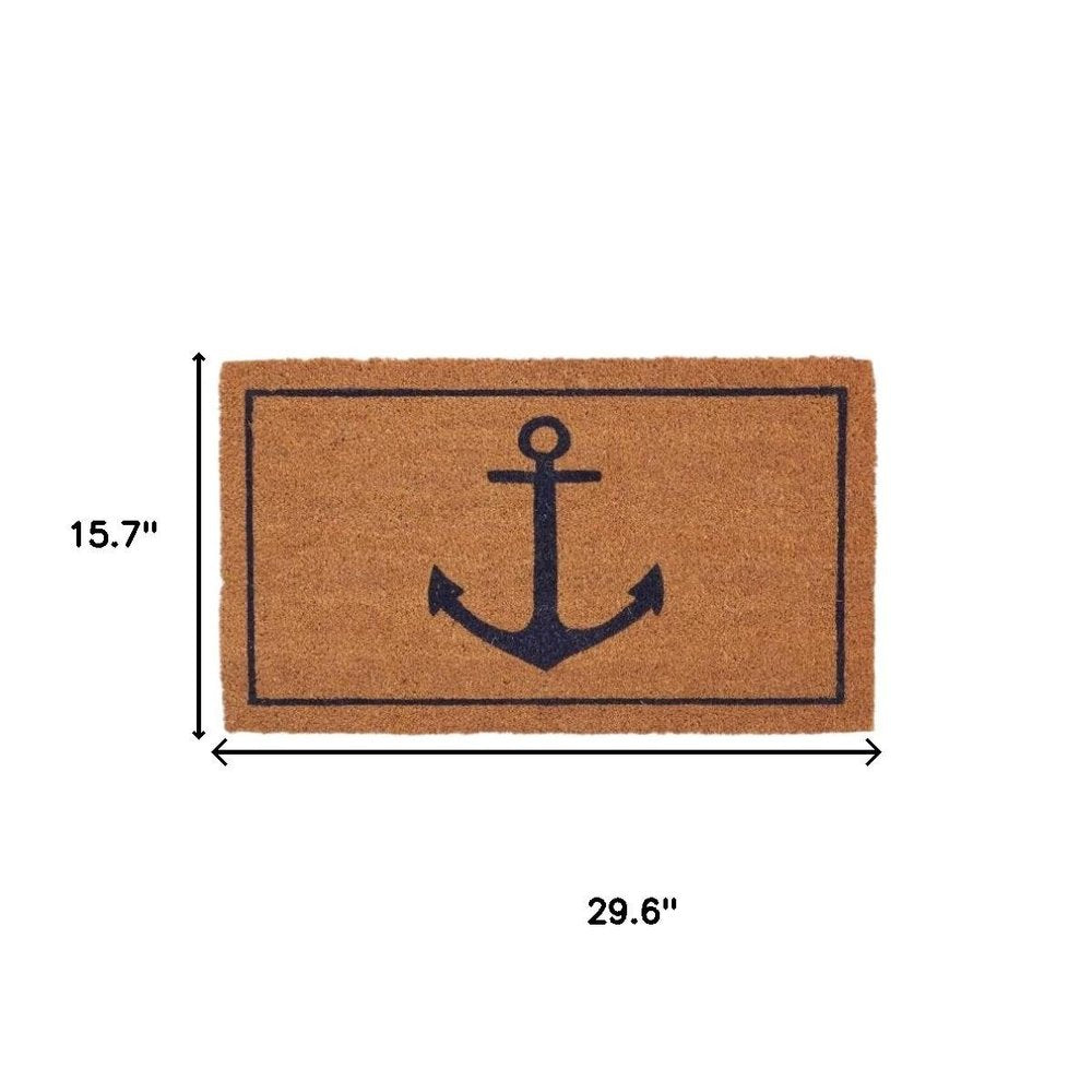 16" X 30" Light Brown And Navy Blue Anchor Indoor Coir Door Mat