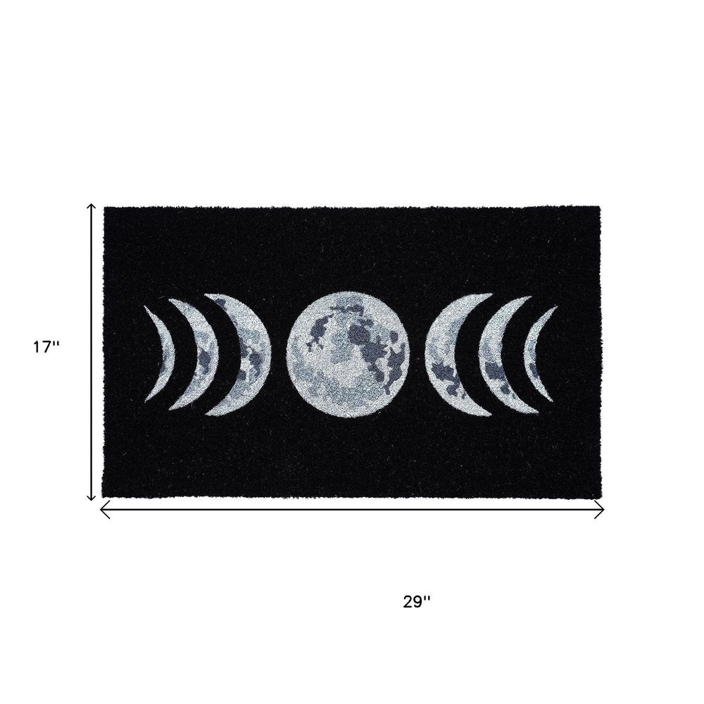 17" X 29" Black And White Phases Of The Moon Outdoor Coir Door Mat