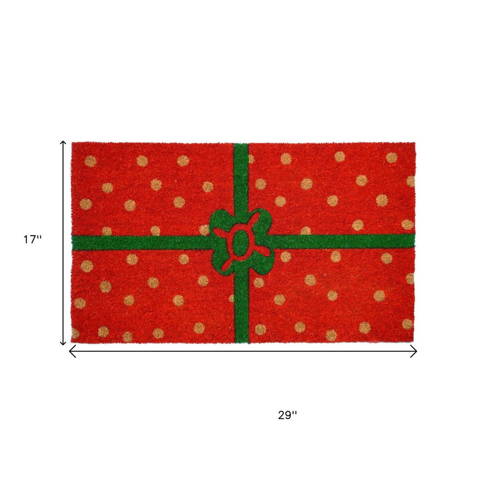 17" X 29" Brown Green And Red Christmas Outdoor Coir Door Mat