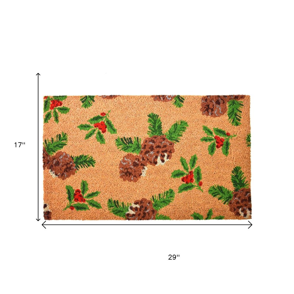 17" X 29" Brown Red And Green Christmas Outdoor Coir Door Mat