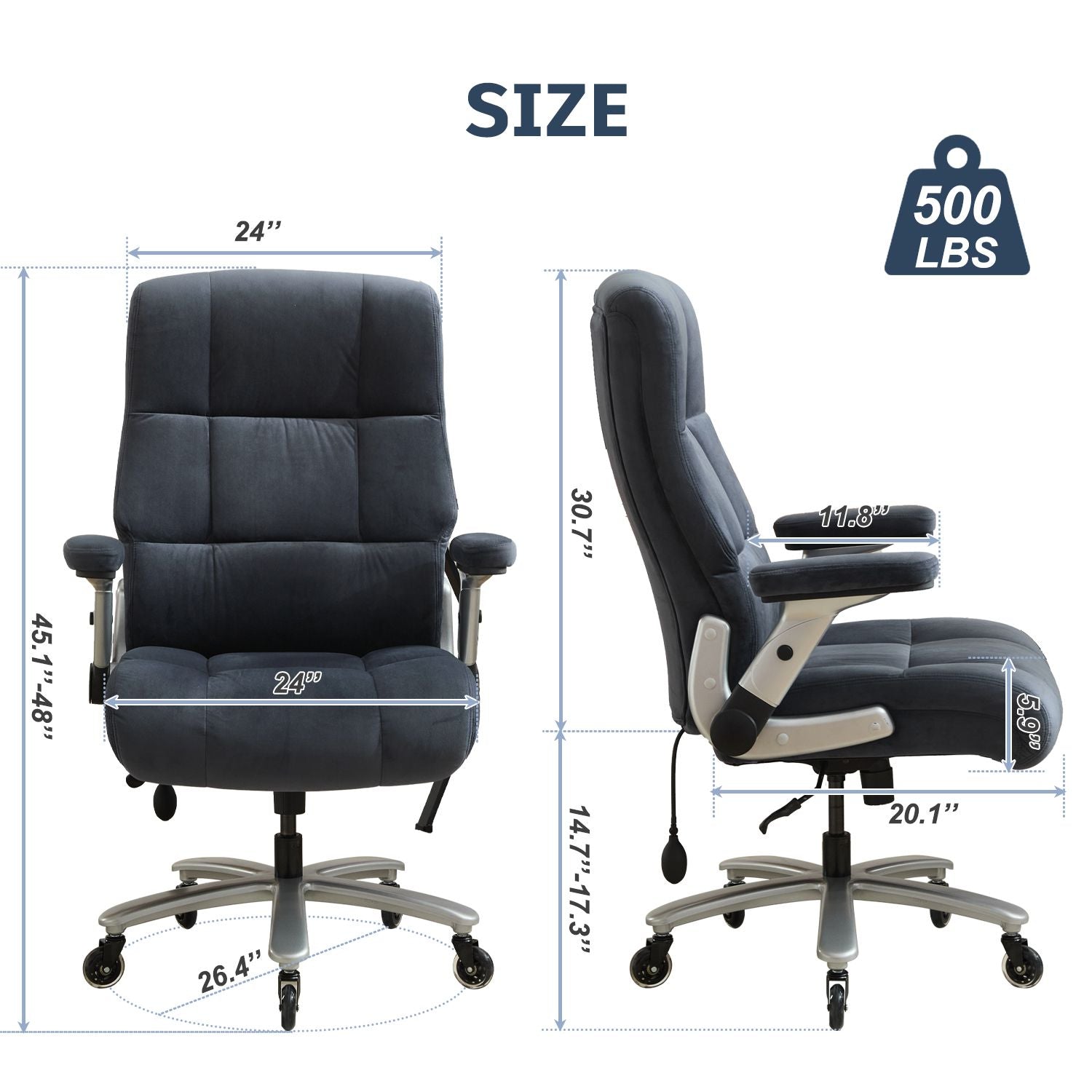 500lbs Office chair is designed for comfort with a spacious seating area and premium high-resilience sponge padding. The flip-up armrests are also padded for extra cushioning and support.