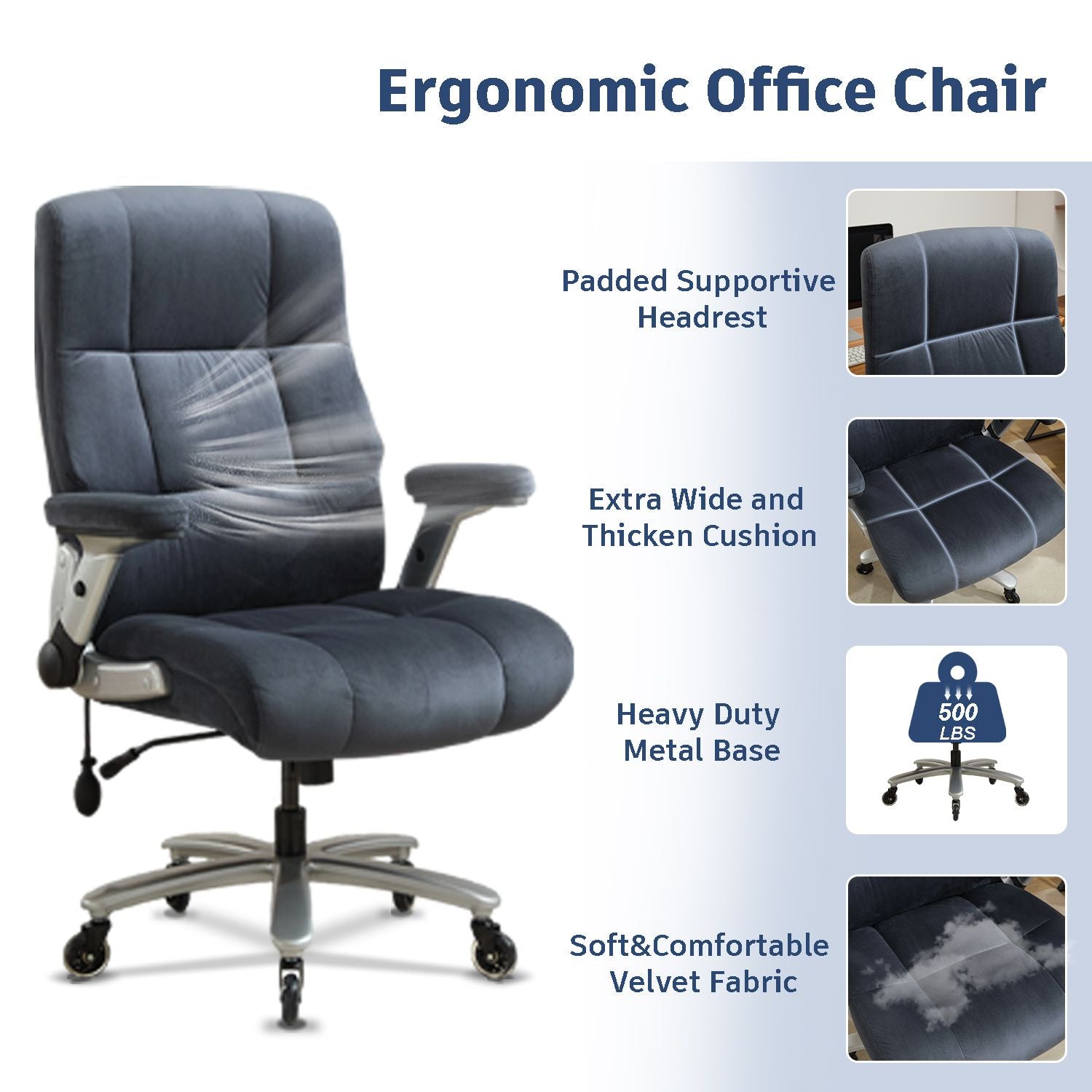 Executive desk chair for heavy people is made from breathable, skin-friendly, and comfortable velvet that is resistant to scratches, stains, and peels. It's perfect for various settings such as home, office, or reception areas.