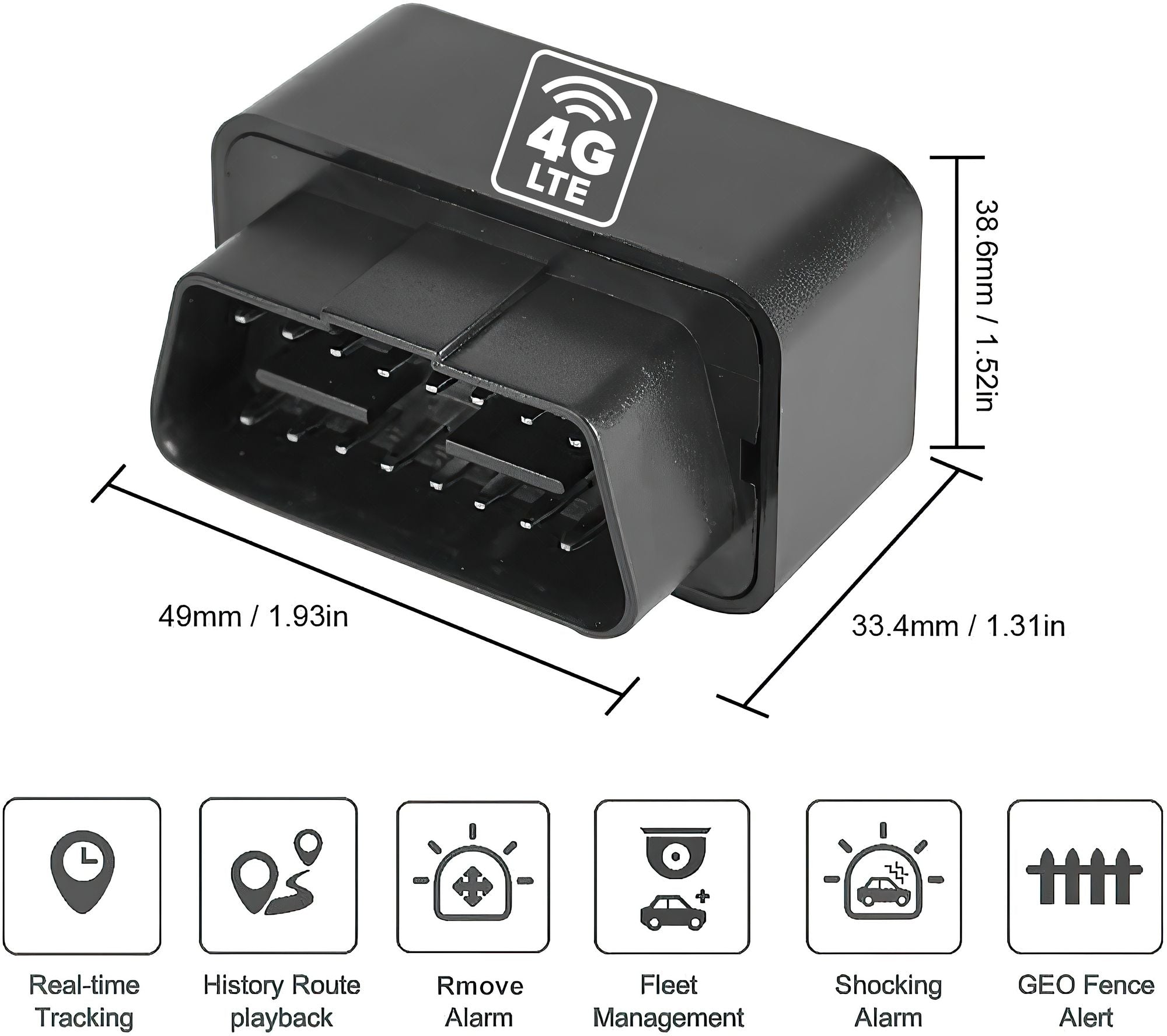 Low Profile - Smallest OBD you will ever find, at just 1.8Lx0.9Wx0.1D inch (with provided flat ribbon cable) and 1.9Lx1.2Wx0.9D inch (without ribbon cable). This is nearly flush with your existing OBD port, as if the GPS Tracker was never installed. This coupled with 4G-Lte Global Coverage, track your vehicle life cross border. Keep peace of mind on your ride anyplace, anywhere, all the
