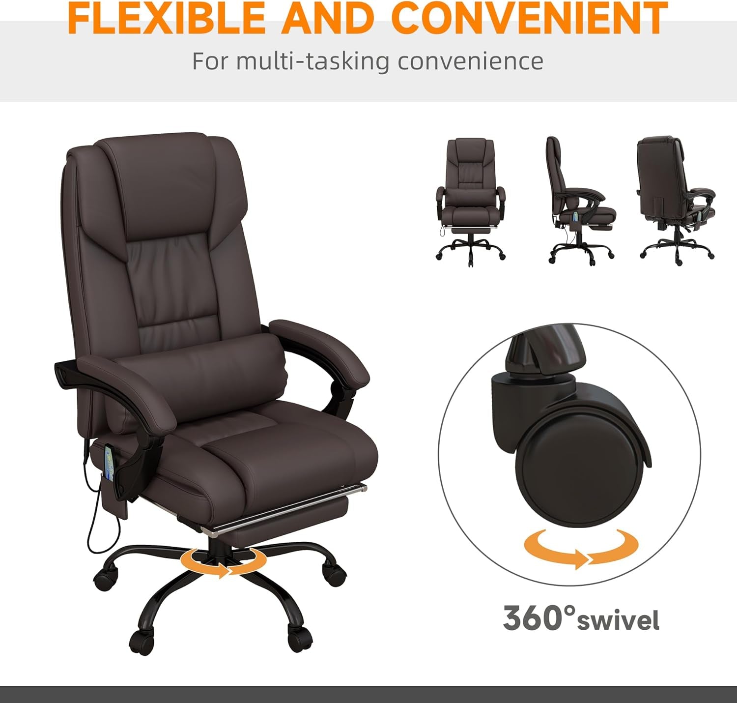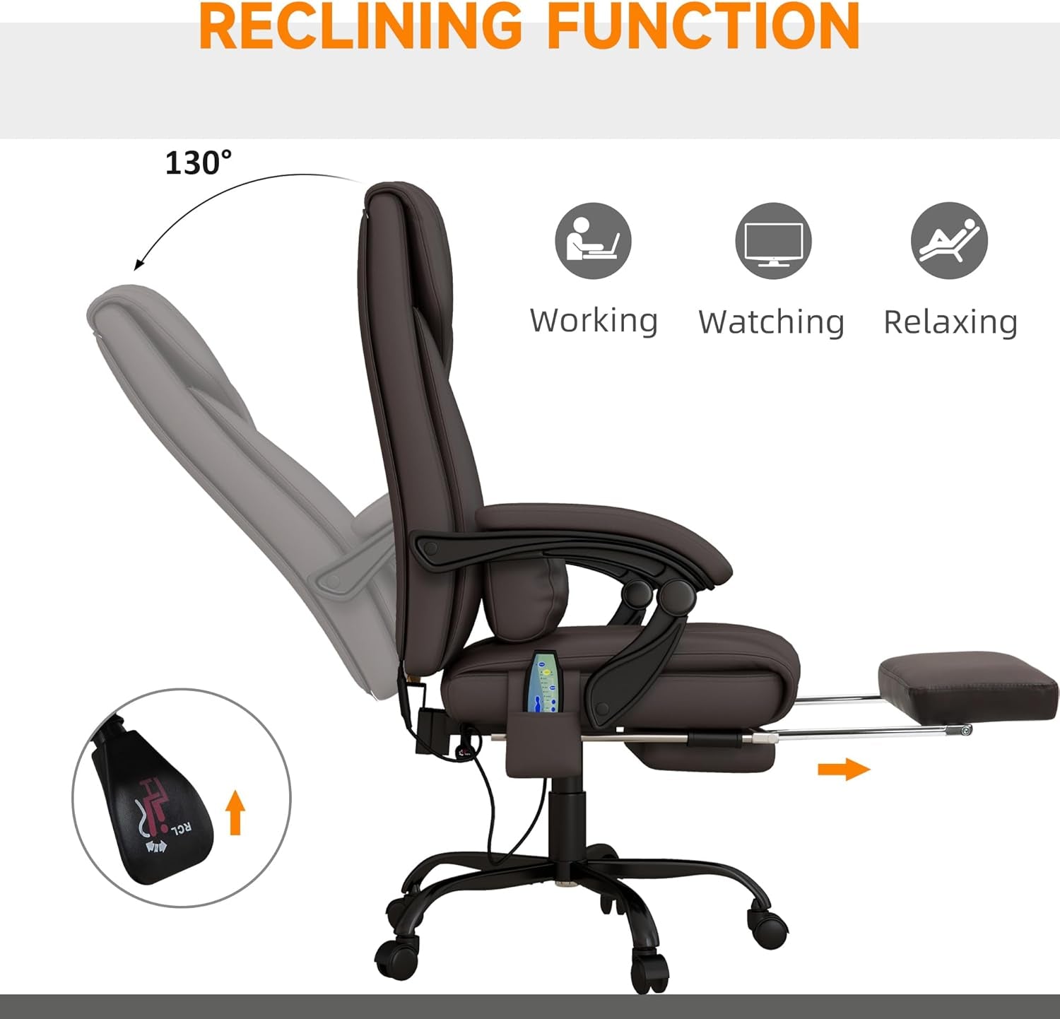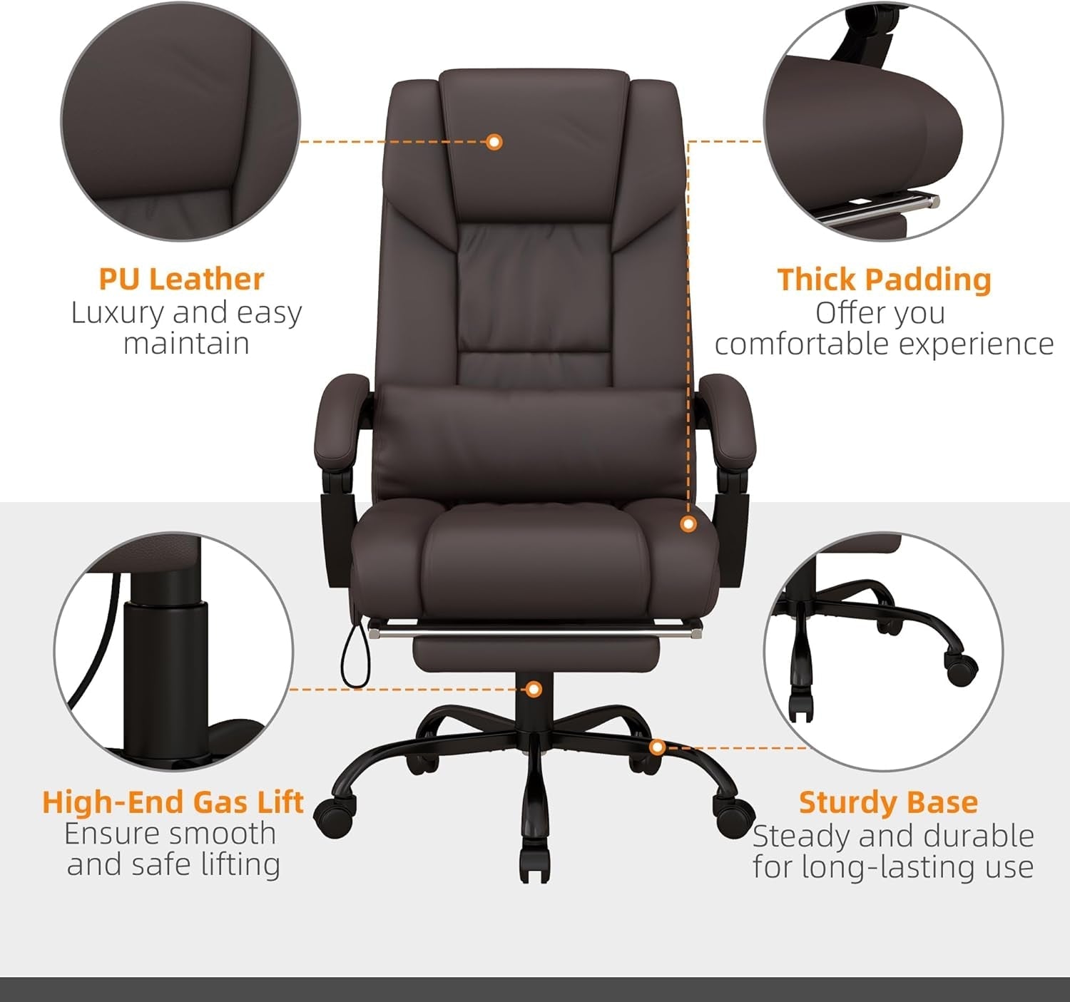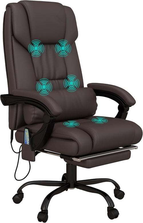 Give yourself a professional-feeling massage in your own home with this comfortable office chair from Vinsetto. Presented in executive design, the faux leather office chair has six different massage points: two on the shoulders, two in the lower back, and two on the thigh area. Height can be adjusted via the lever below the work chair. The back angle can be adjusted up to 130 degrees, with a footrest that can be smoothly pulled out for extra relaxation.