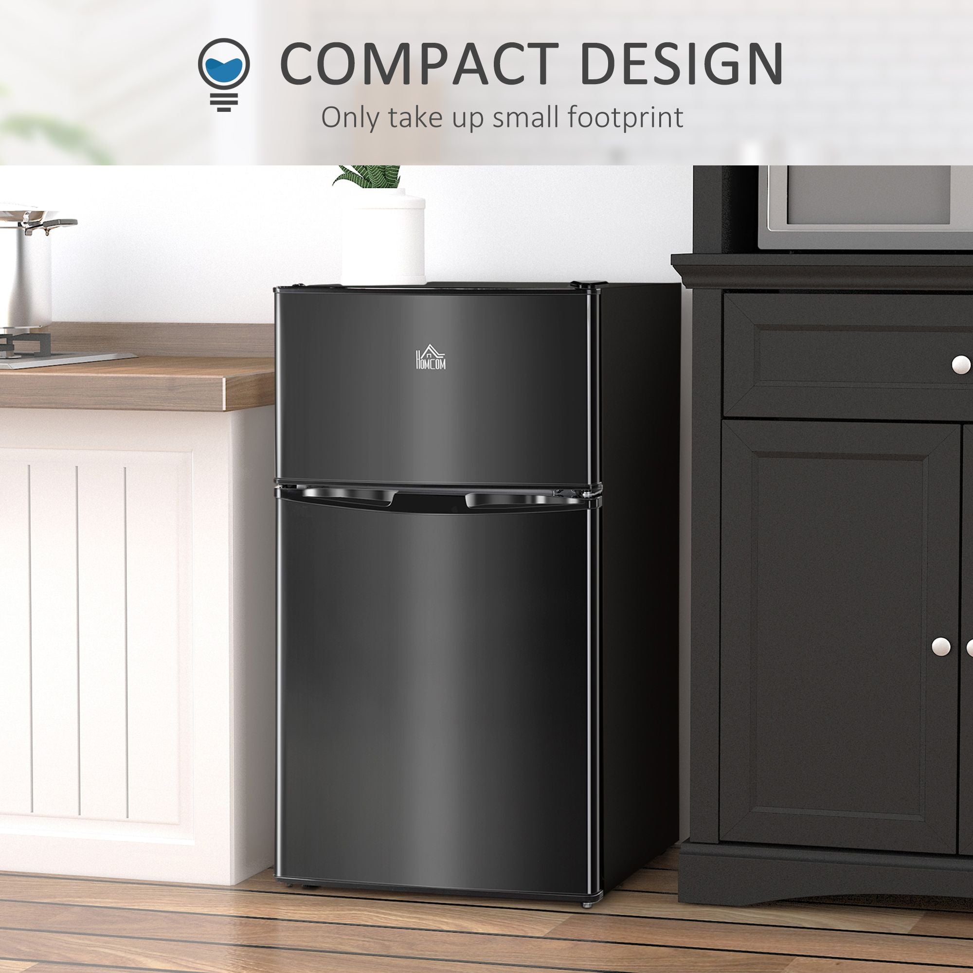 HOMCOM 3.2 Cu.Ft Double Door Mini Fridge with Freezer Adjustable Shelf