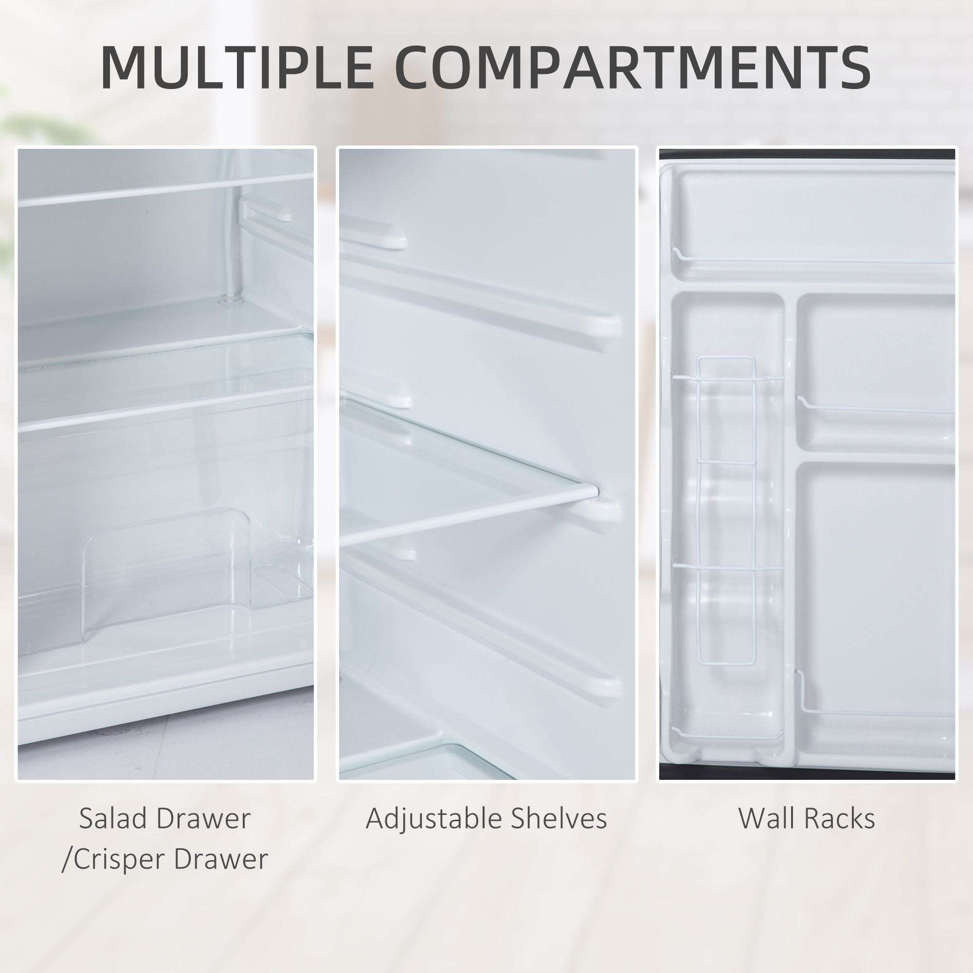 Plenty of Storage: This compact fridge has 0.35Cu. Ft. freezer compartment at the top and under is two shelves, wall storage in the door, and a crisper drawer to store any food that needs to be cold and stay cold. You can adjust the shelf to fit different-sized bottles or cans.