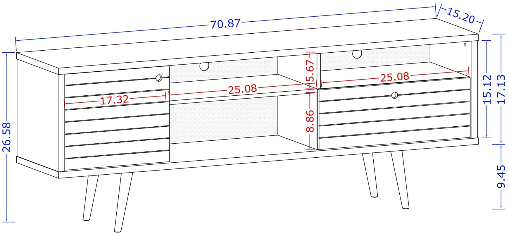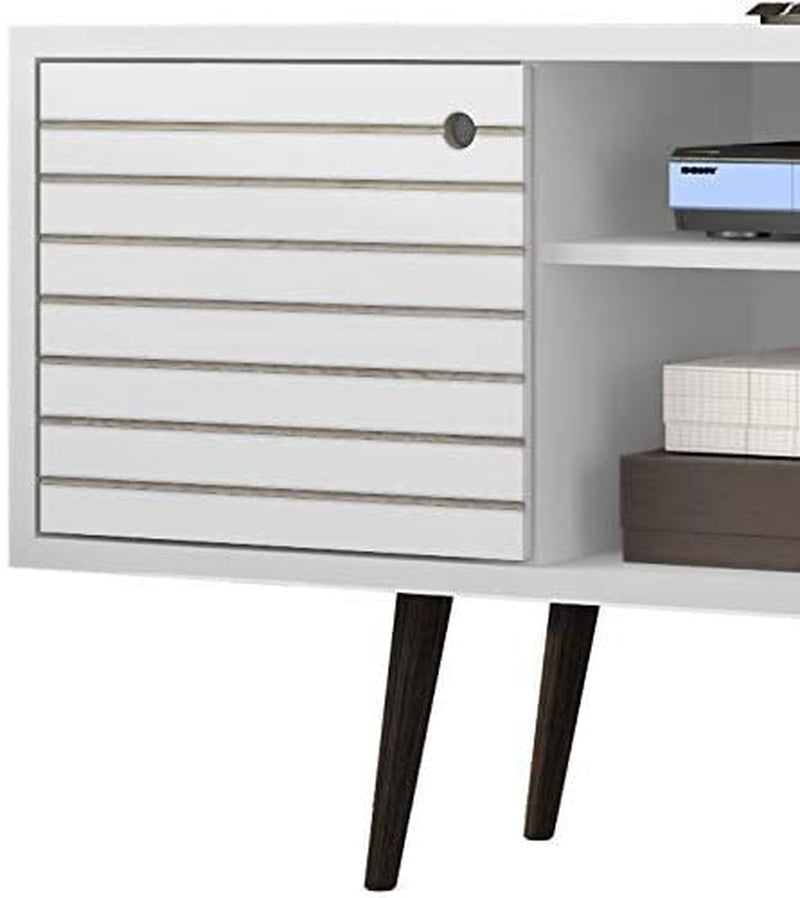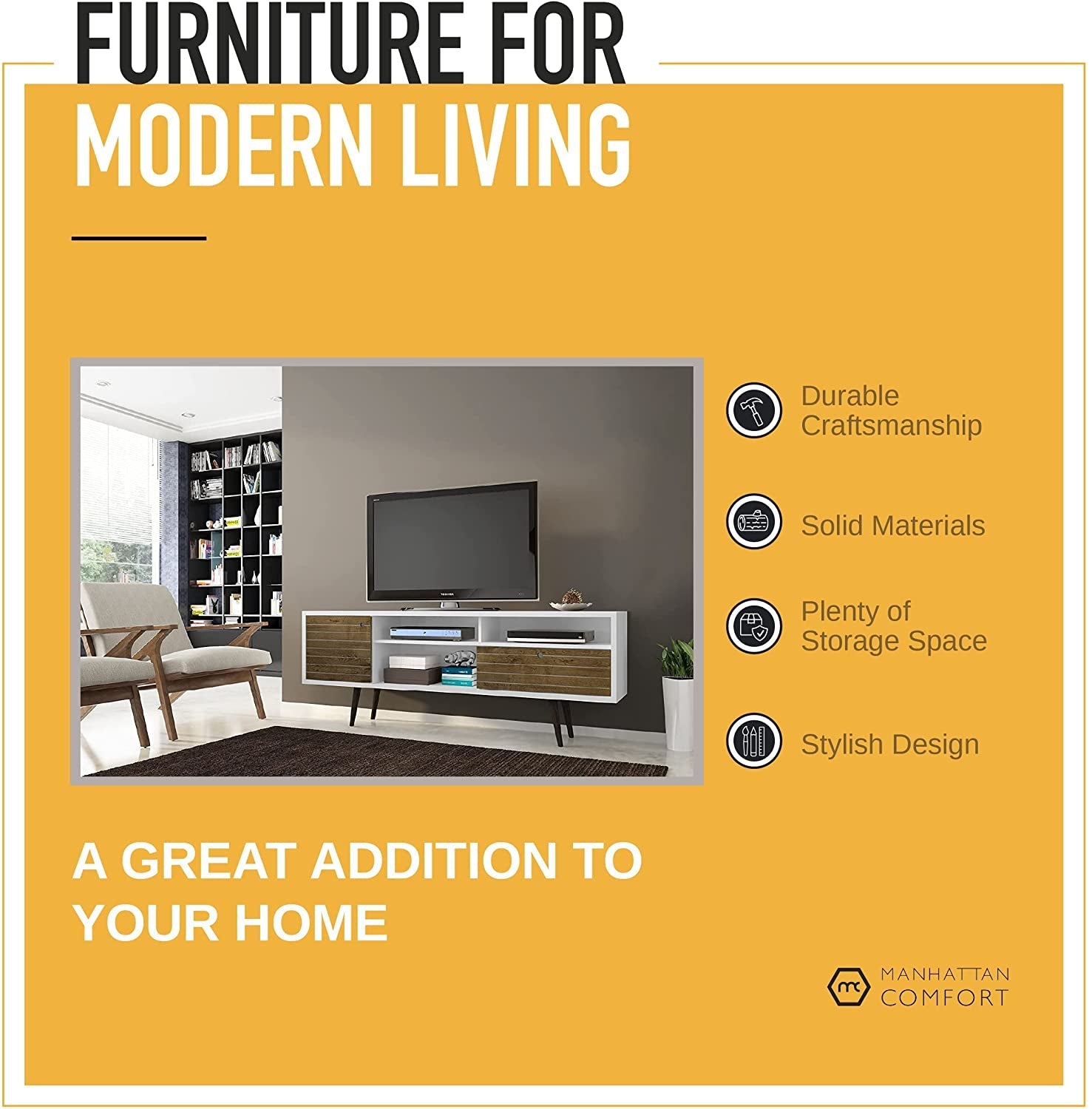 Bring the Big Apple into your home with Manhattan Comfort. Our Liberty media stand will fit into even the smallest of apartments while still bringing sleek and practical style. It includes a console cabinet that can house gaming consoles, movies, and games and has shelves that can hold board games, books, and any other items that need a home. This low TV stand also offers space to display your favorite collectibles. It won’t take up much room but will seriously deliver on quality and style. This console is made with high-quality MDF to ensure durability and lasting beauty and comes in a variety of colors and finishes, allowing you to choose the best television stand for your space. Try it in your bedroom, living room, or media room. Undeniable quality, a stunning look, and convenient storage come together to make this piece a must-have for any home or apartment. Complete your space with a Manhattan Comfort TV stand with storage!