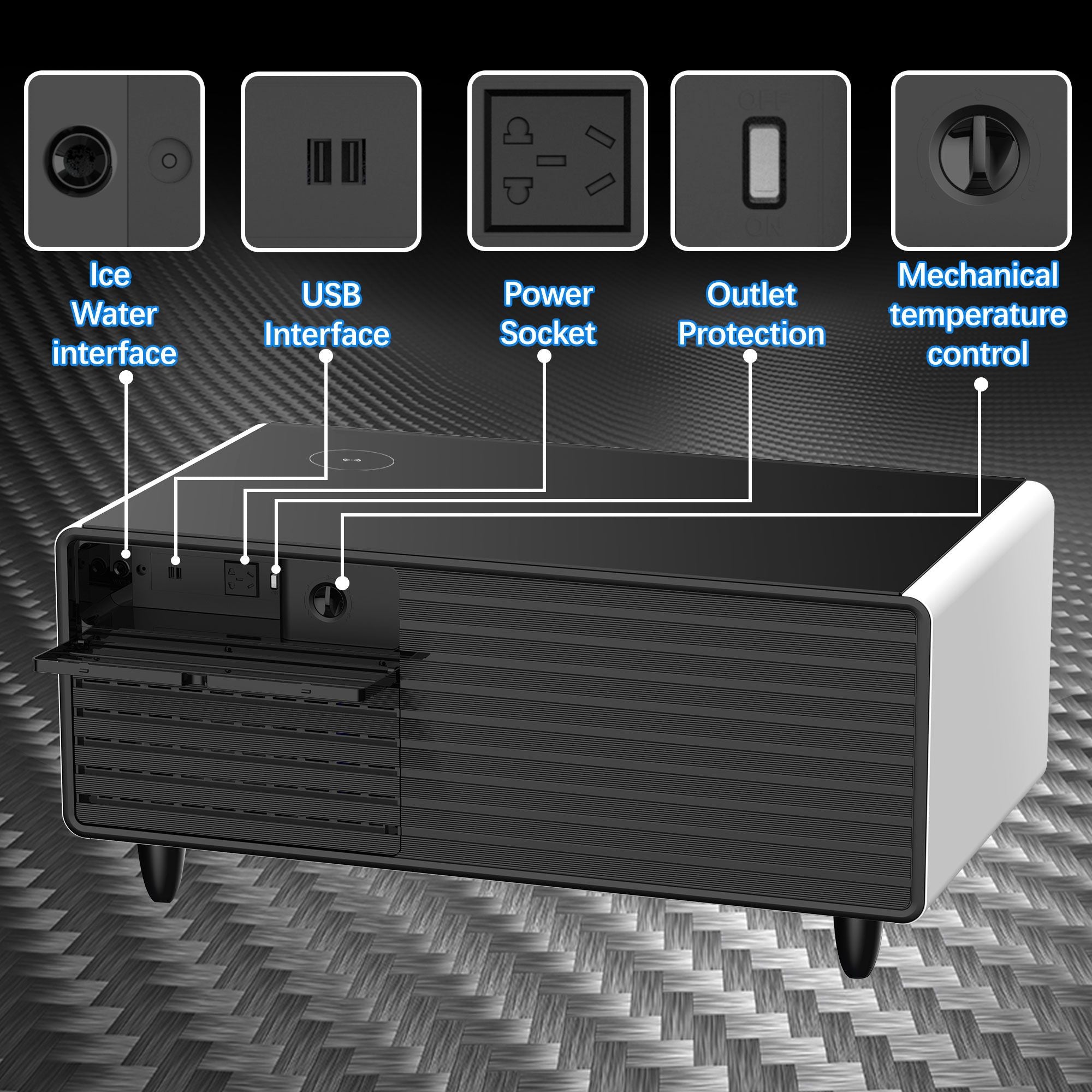 Smart Mini Table -The Coffee Table with refrigerator is a smart home appliance & Furniture product newly created based on new family lifestyle. It can efficiently meet the beer cola; tea; fruits; Snacks; ; convenient and high-quality new living room living experience through integrated furniture & home appliance solutions.