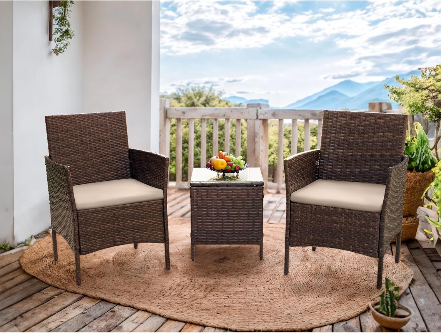 Transform your outdoor space with our Stylish 3-Piece Rattan Patio Furniture Set. This beautifully designed set combines comfort and durability, making it the perfect addition to any patio, balcony, or yard.