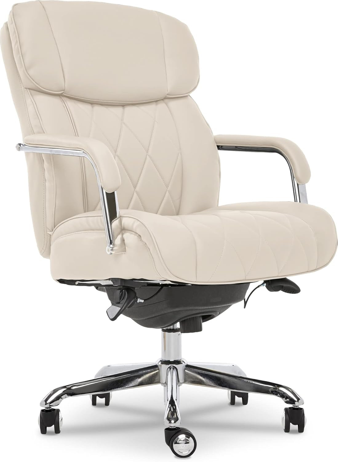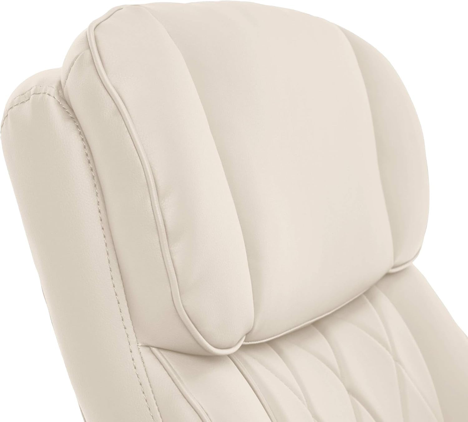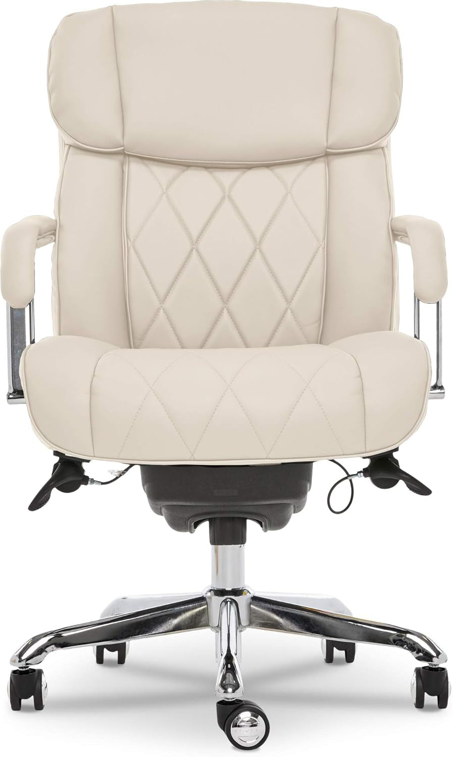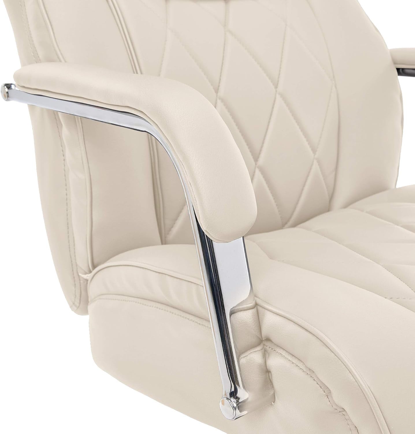 Experience the perfect blend of comfort and style with the Elegant Ivory Executive Chair. This ergonomic office chair is designed to provide full-body support, making it an ideal choice for long working hours. The chair features a sophisticated diamond-quilted leather upholstery that adds a modern touch to any office or home environment.