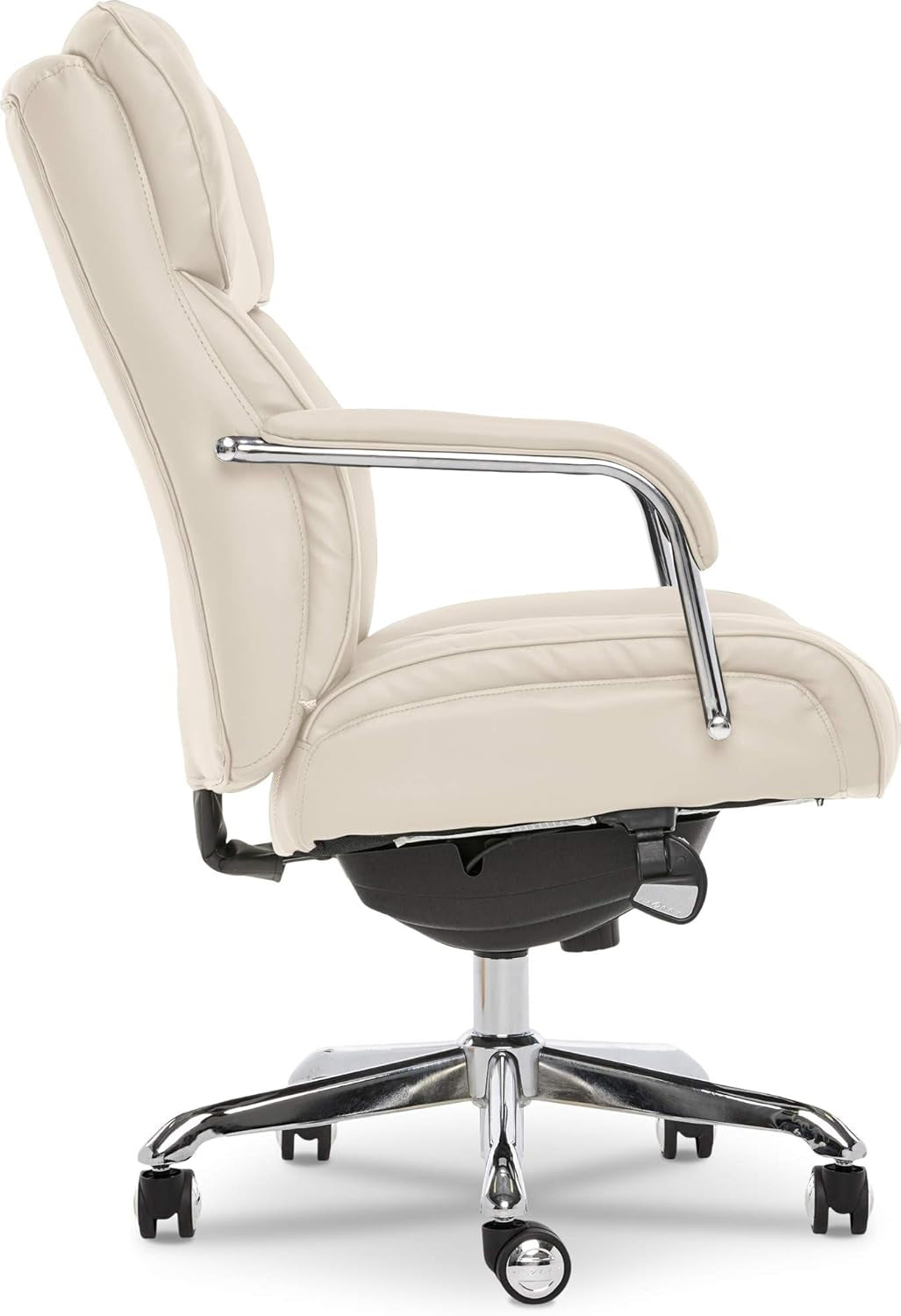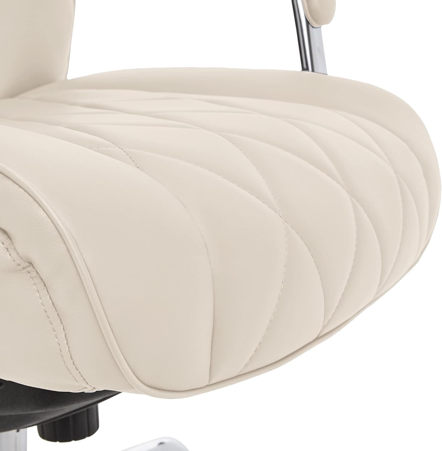 The Elegant Ivory Executive Chair is not only designed for comfort but also combines functionality with style. Its polished chrome accents on the arms and swivel base enhance the overall aesthetic, making it a perfect match for modern interiors. Please note that the rolling casters are intended for carpet use and are not recommended for tile or hardwood floors. Upgrade your workspace with this luxurious and ergonomic executive chair today.