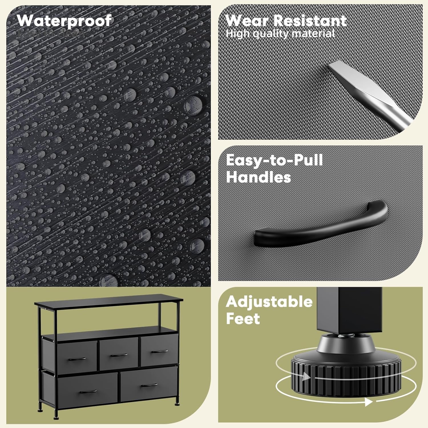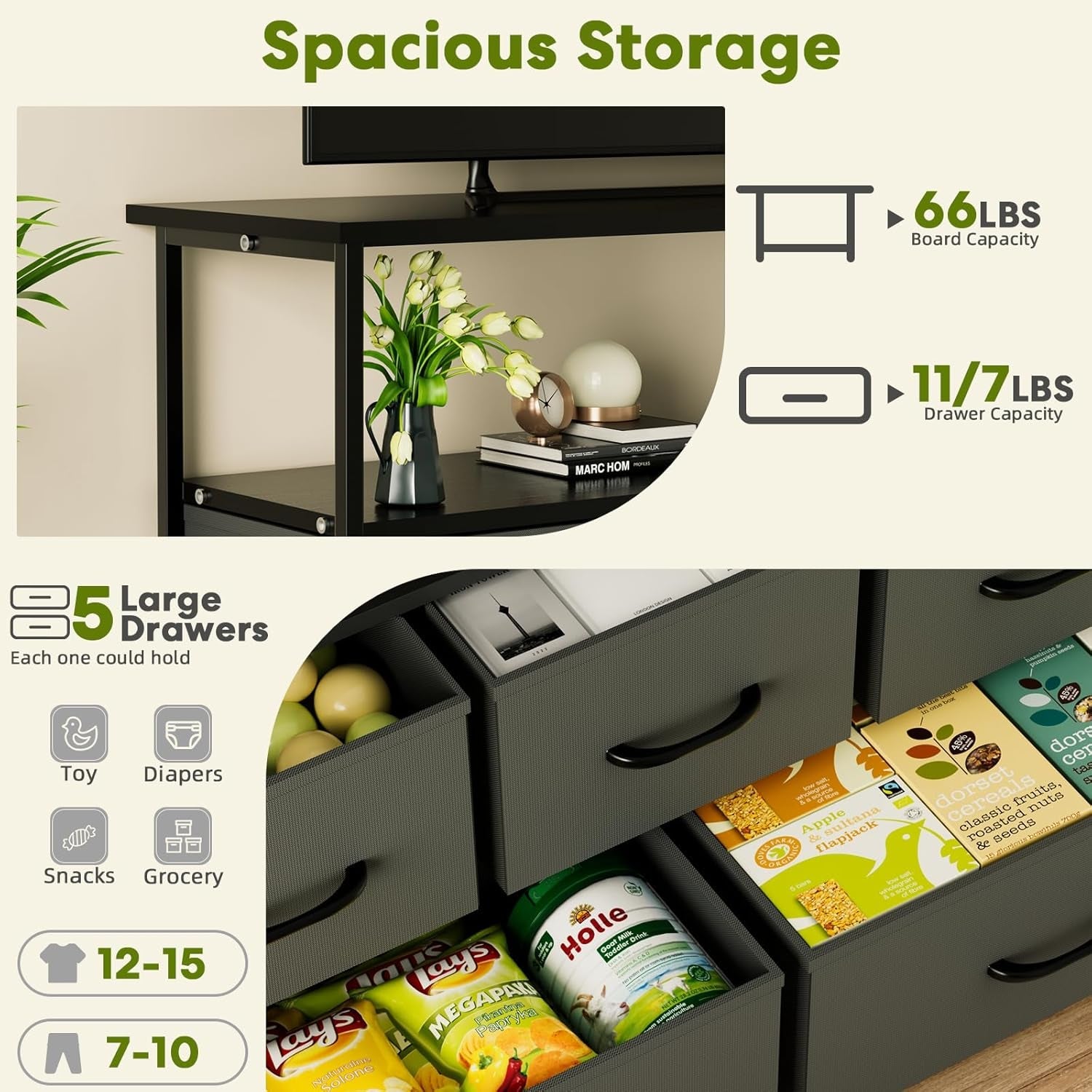 Introducing the **Versatile TV Stand with Fabric Drawers and Wood Top**, a multi-functional solution for your storage needs. This stylish and practical piece of furniture seamlessly integrates with your home decor while providing ample storage space and easy accessibility.