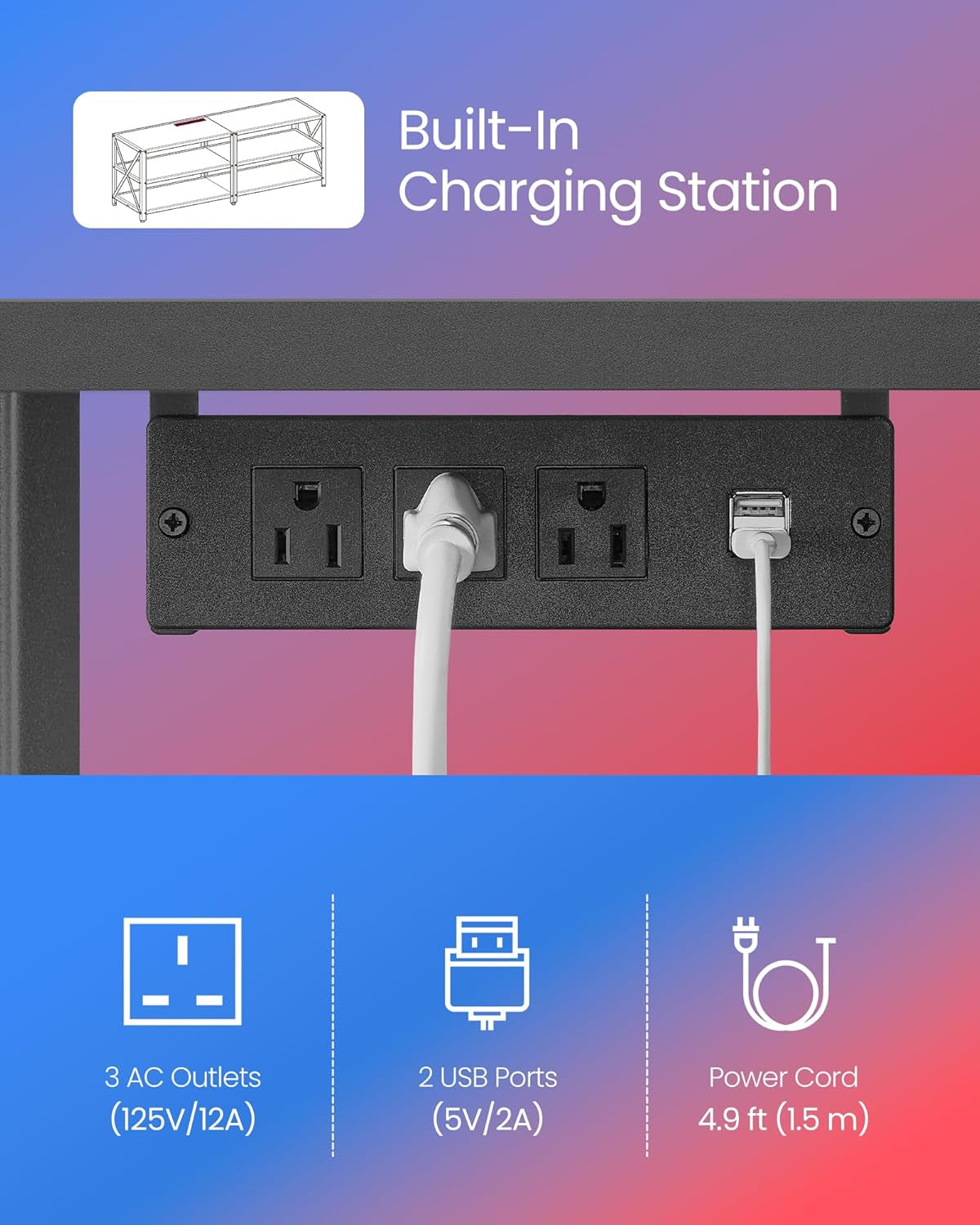 Transform your living space with our Stylish TV Stand with LED Lights and Outlets. This multifunctional piece not only provides a sleek viewing platform for your TV but also enhances your home entertainment experience with modern features and ample storage. Keep your media devices organized and accessible while enjoying a customizable ambiance.
