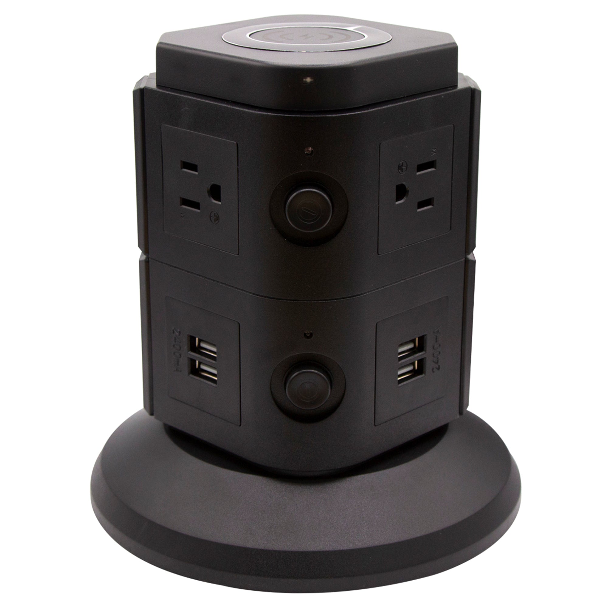 Elevate your charging game with the ZTECH Power Strip Tower, a dynamic fusion of innovation and convenience. This two-layer powerhouse is crowned with a cutting-edge wireless charging pad, compatible with all Qi-enabled devices, delivering 10W, 7.5W, or 5W of cordless charging based on your device's requirements. The tower's sleek design incorporates an LED indicator and metal detector, ensuring optimal functionality - constant red signifies power and charging, while blinking blue detects metal, and constant blue indicates charging in progress.