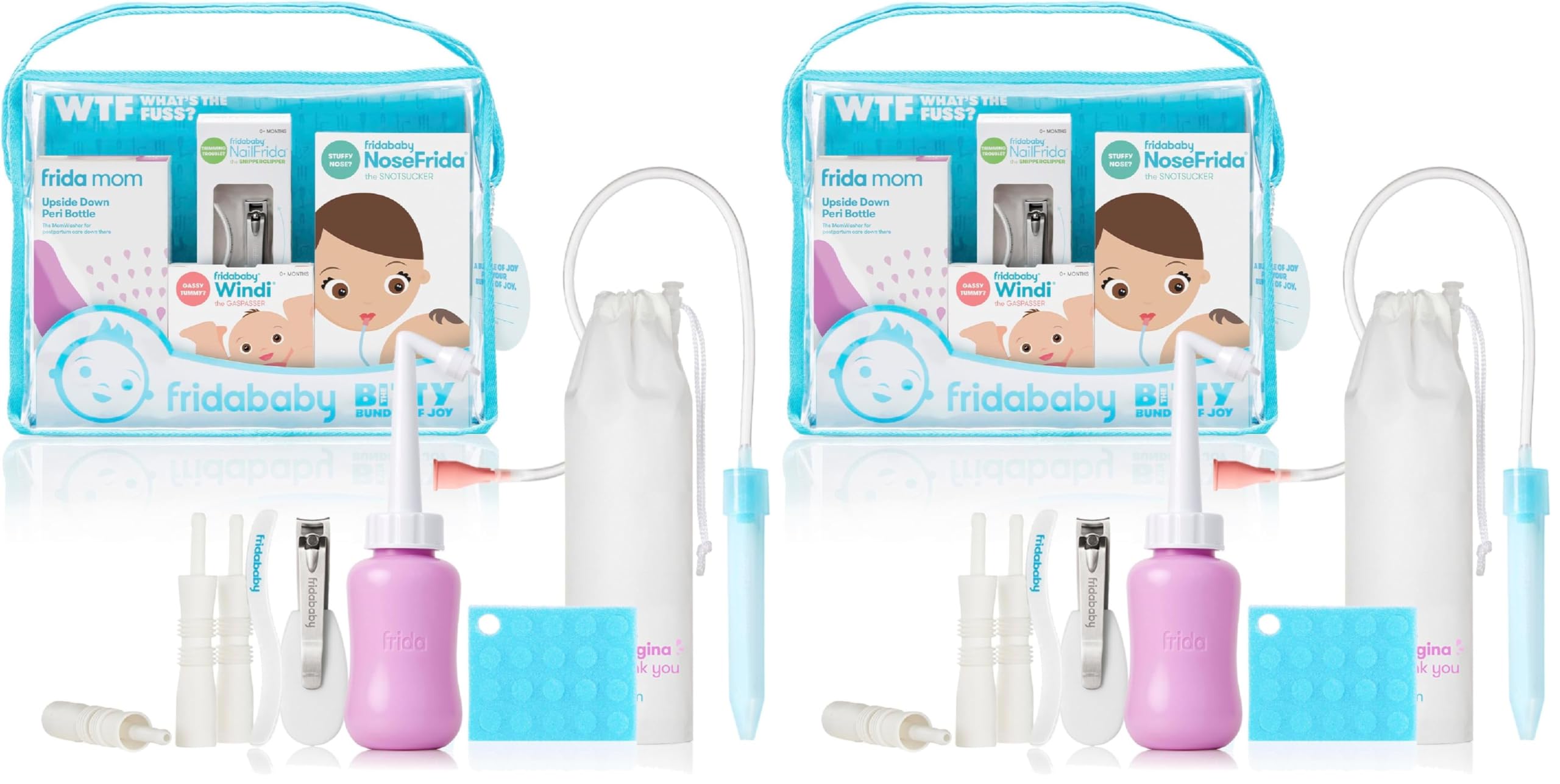 Frida Baby Basics Kit, 6pc Baby Essentials Kit Includes Nasal Aspirator Snotsucker, NailFrida Nail Files, Windi Gas Relief, DermaFrida Bath Brush + Silicone Carry Case