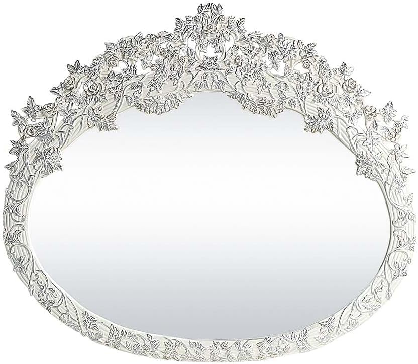 Luxurious style, sophisticated charm, and lustrous finishes are all included in the Vanaheim Mirror. Extravagant scroll floral design with gold trim accent creates classic appeal and timeless silhouettes. Oval shaped mirror inlay adds depth and dimension to your bedroom. With so many irreplaceable characters, the Vanaheim mirror will work beautifully in a variety of other spaces.