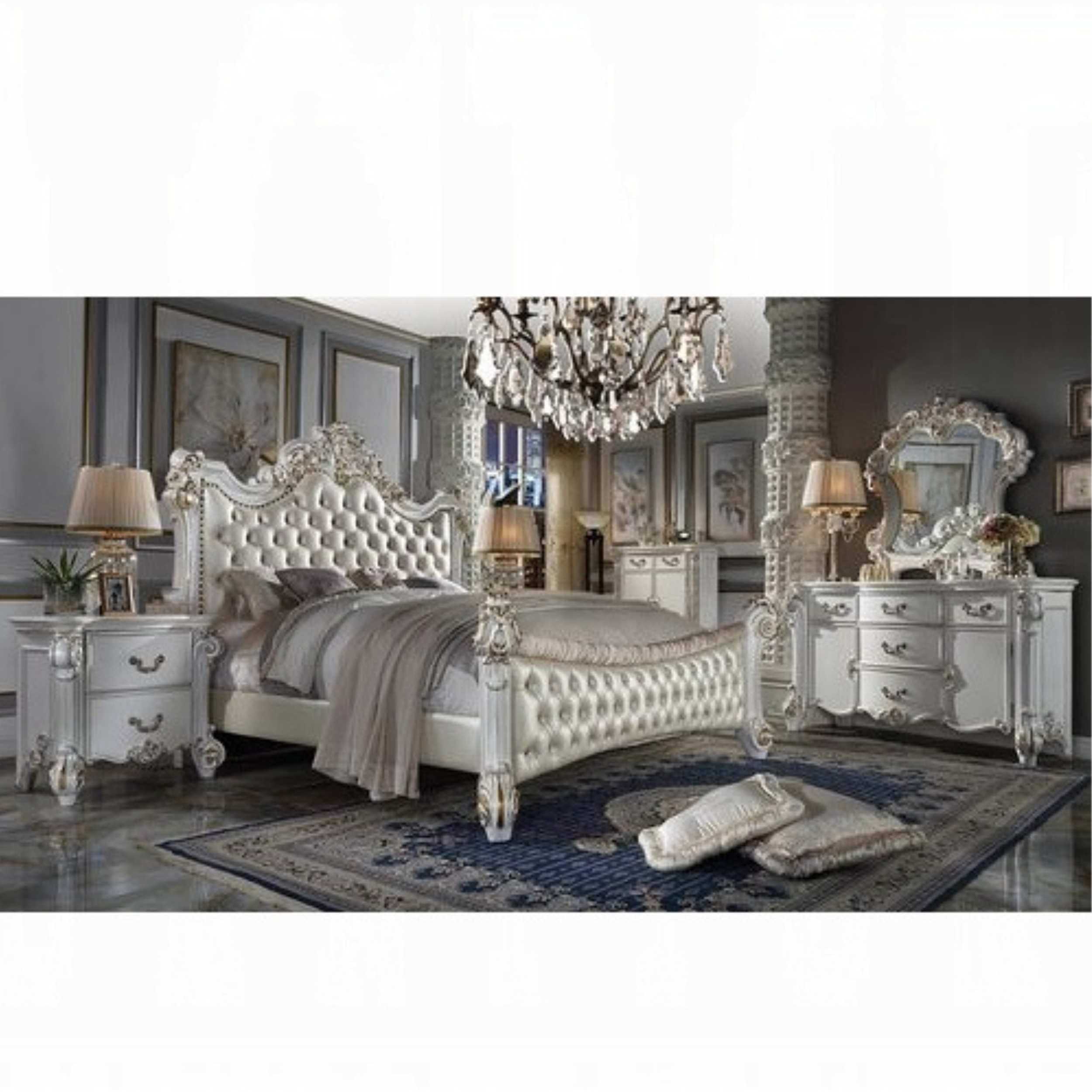 Indulge in the fairy-tale luxury you’ve always dreamed of with the Vendome California King Bed — a bed designed to make every night feel like a royal retreat. Crafted with meticulous attention to detail, this bed combines PU upholstery, crystal-like button tufting, and hand-brushed gold highlights over a stunning antique pearl finish to create a masterpiece of refined beauty and comfort.