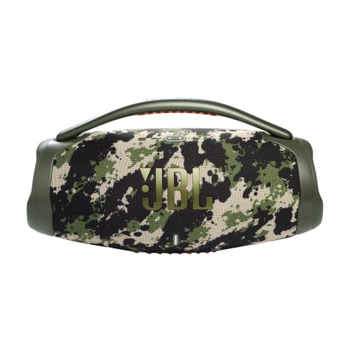 • Strong, bold design: We've updated the sleek, iconic JBL silhouette. With twin sidecaps and a sturdy metal handle with an eye-catching orange silicone grip, you can take your music—and your style—anywhere. JBL is committed to more sustainable, earth-friendly packaging. That's why the Boombox 3 comes in a recyclable paper-based box, including the inner tray, with an exterior printed with soy ink.