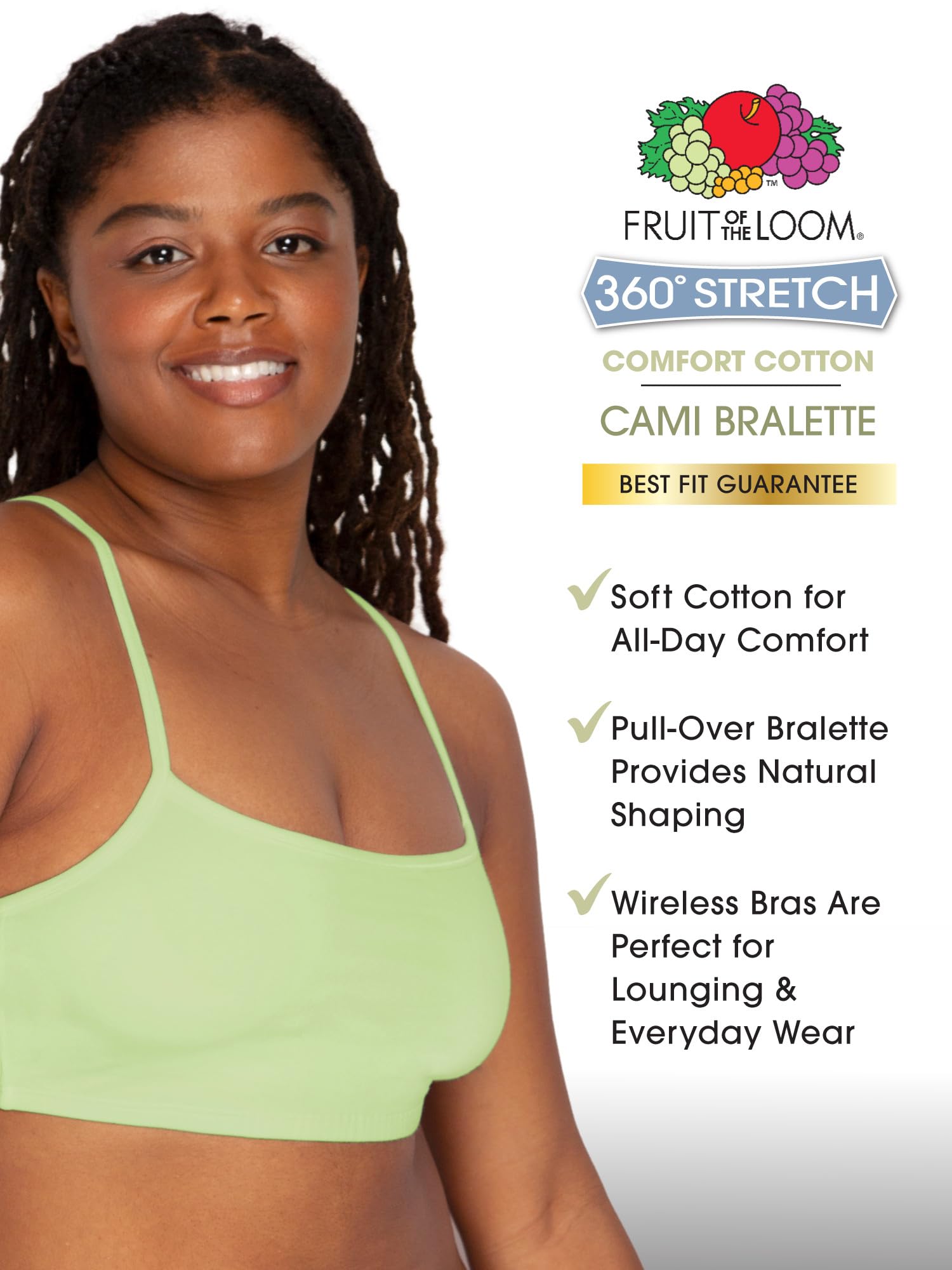 Designed with a full-coverage crop top neckline, the Fruit of the Loom Strappy Women's Sports Bra can be flaunted under shirts and takes for a cool flash of color. This great sport bra can be worn on it's own or layered for more color and support. An active lifestyle requires a brand that can give support and comfort. Fruit of the Loom has been a leader in affordable undergarments for more than 160 years. Our Unconditional Guarantee insures that you get the best product every time or your money back. So run, jump, bike, or sprint happy with Fruit of the Loom.