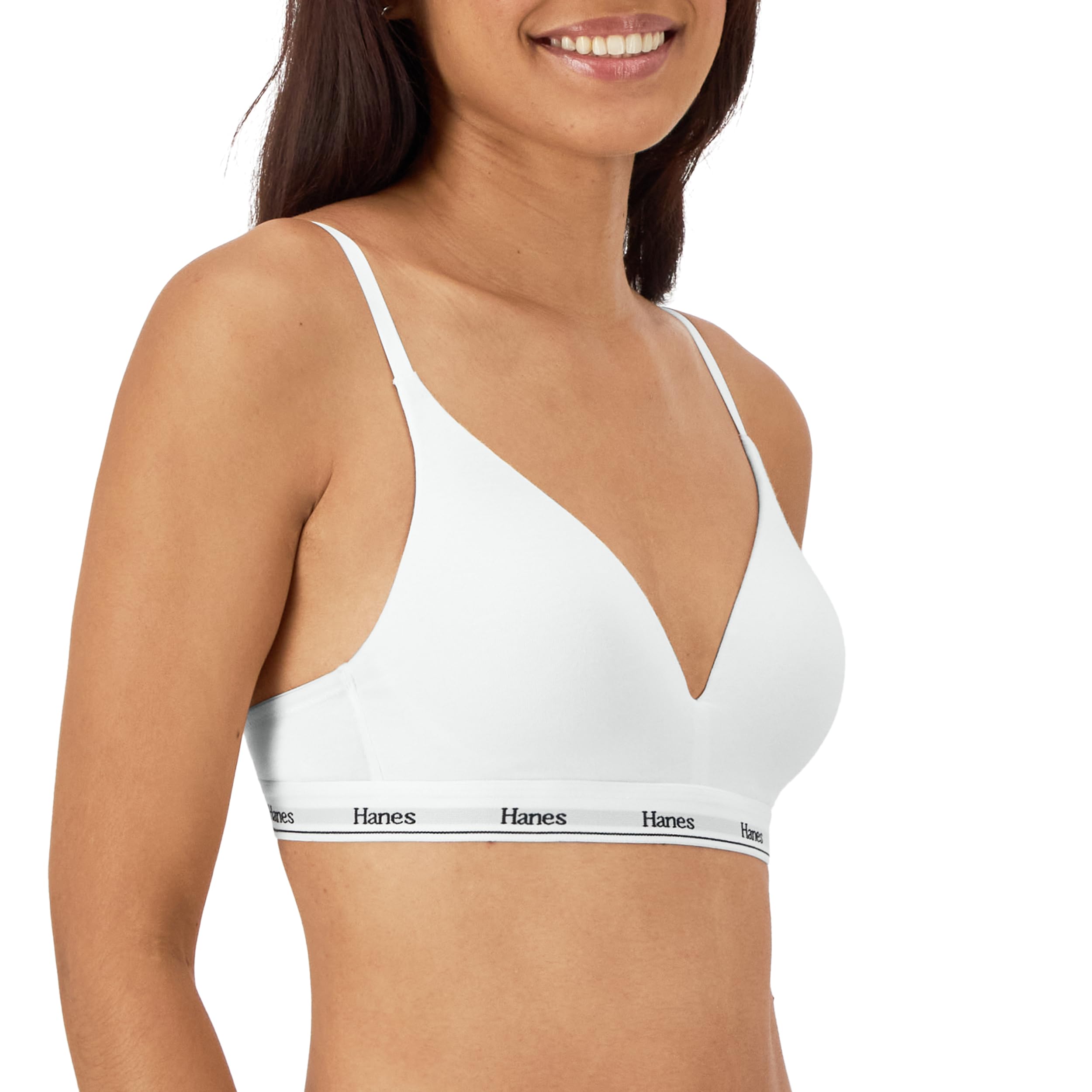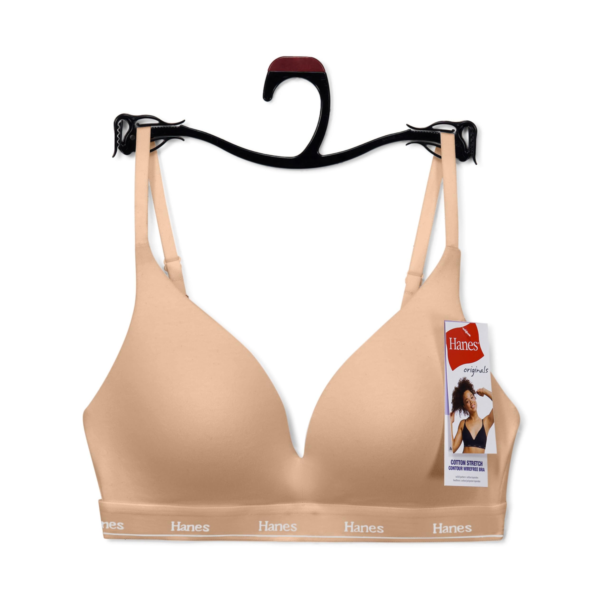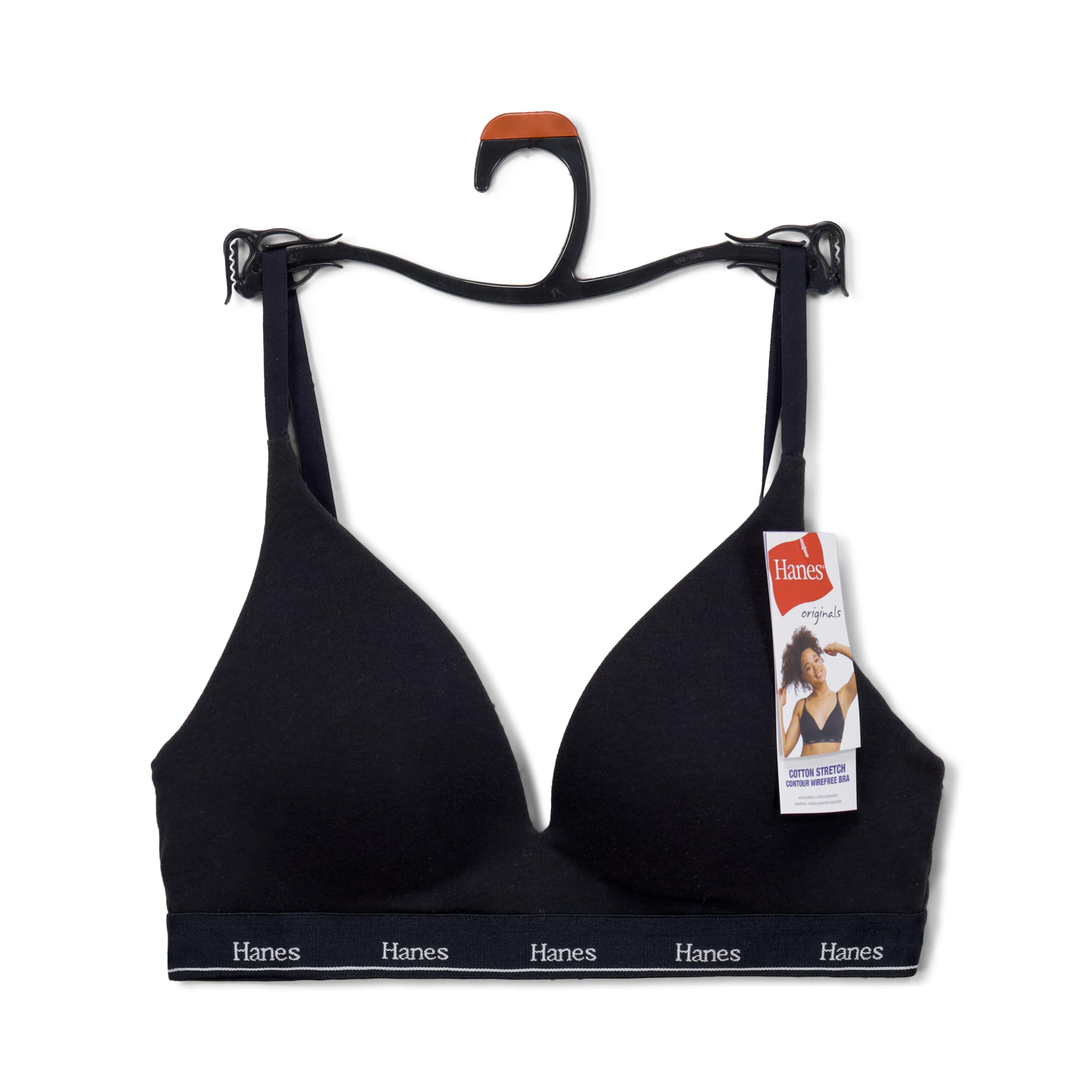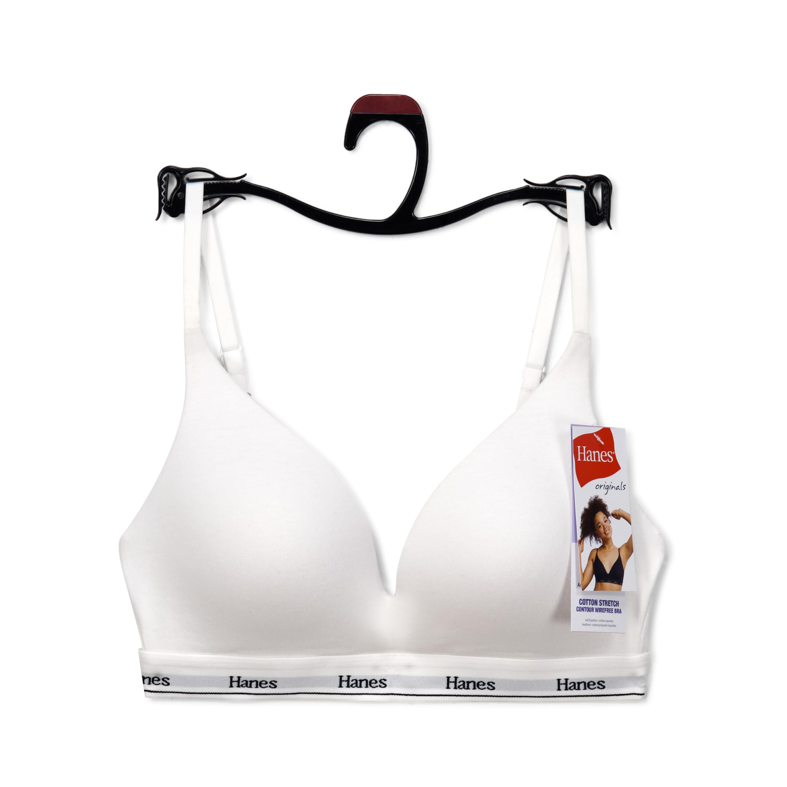 Every wardrobe needs an everyday, go-to wireless bra - that's where this contour bra from the Hanes Originals collection comes in. Made with our signature cotton-rich fabric, this full-coverage bra is designed to leave your skin feeling happy and free. Padded cups retain their shape and offer support without the hardware of an underwire. You'll love the feminine V-neckline, classic Hanes branding on the underband, and the adjustable, convertible straps. Hanes Originals have your back (and your front) with all-over comfort, style, and quality you can count on! BASICS THAT ARE FAR FROM BASIC - A stylish collection of cool, modern essentials designed for comfort, made for every body. Be yourself in Hanes Originals.