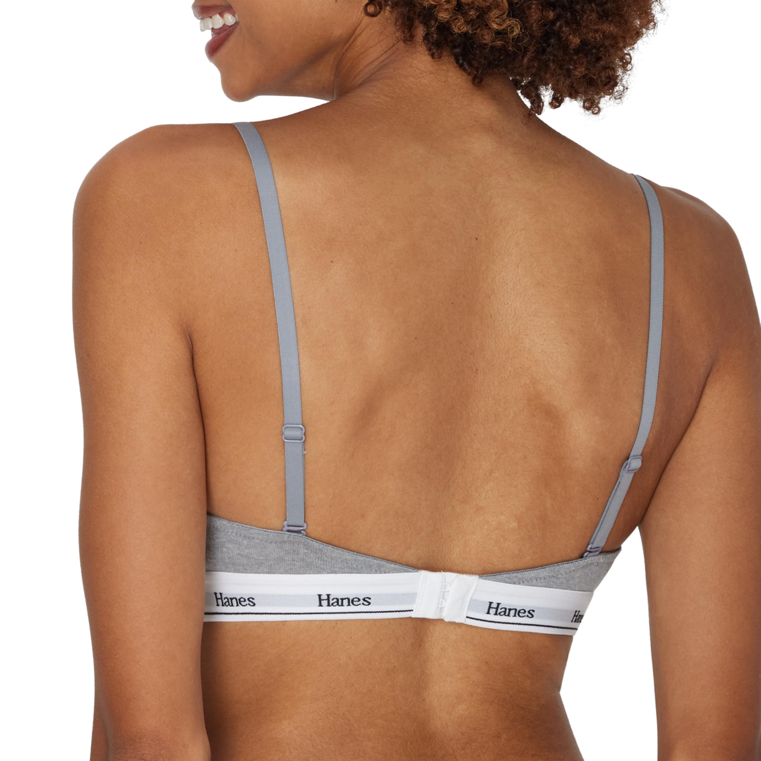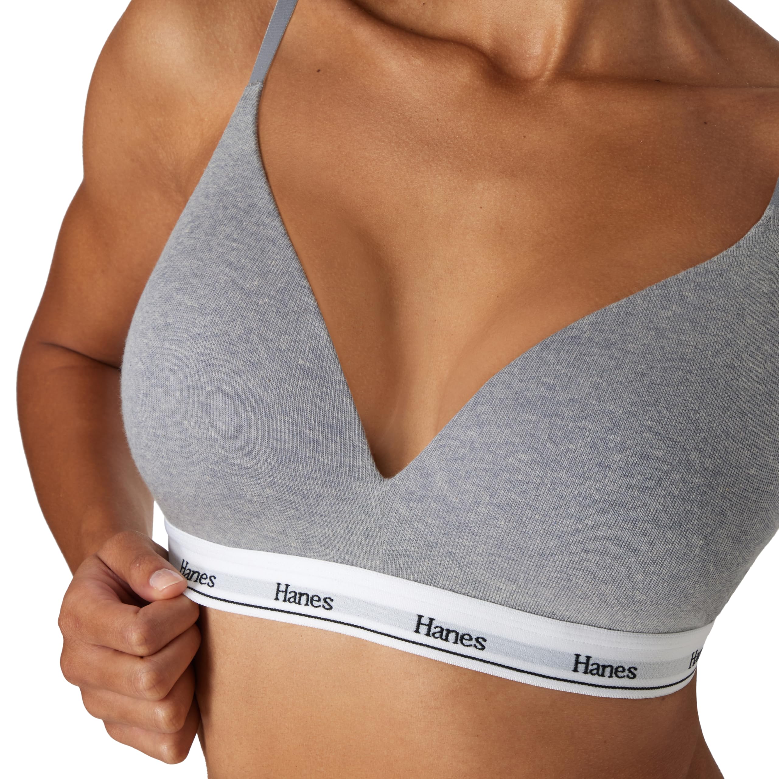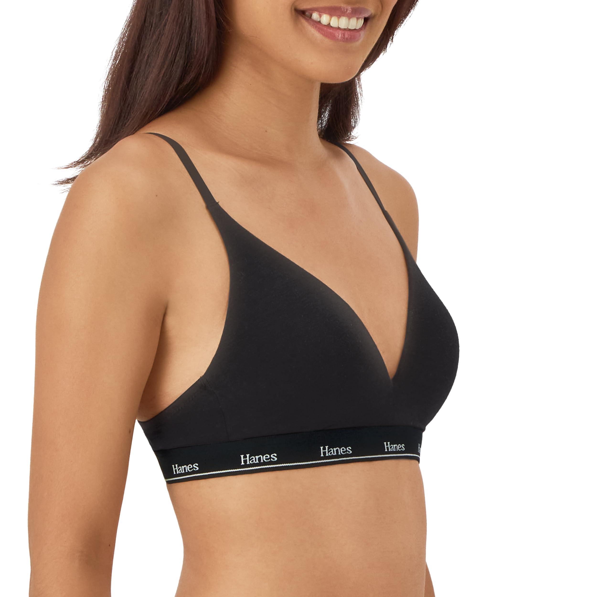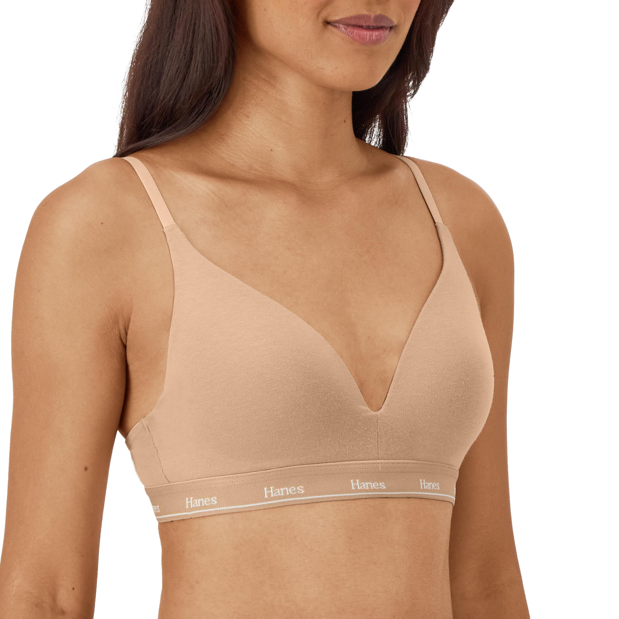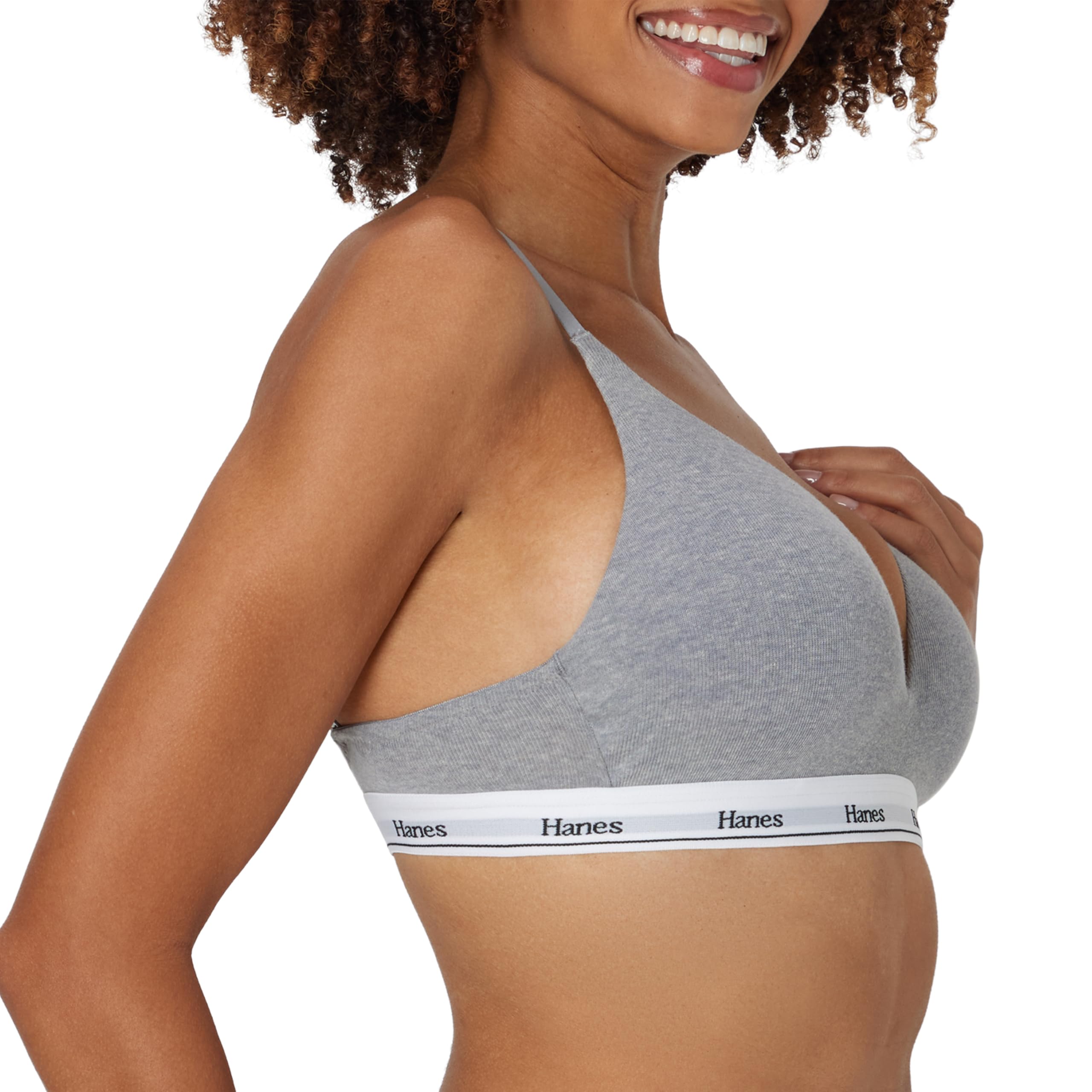 Every wardrobe needs an everyday, go-to wireless bra - that's where this contour bra from the Hanes Originals collection comes in. Made with our signature cotton-rich fabric, this full-coverage bra is designed to leave your skin feeling happy and free. Padded cups retain their shape and offer support without the hardware of an underwire. You'll love the feminine V-neckline, classic Hanes branding on the underband, and the adjustable, convertible straps. Hanes Originals have your back (and your front) with all-over comfort, style, and quality you can count on! BASICS THAT ARE FAR FROM BASIC - A stylish collection of cool, modern essentials designed for comfort, made for every body. Be yourself in Hanes Originals.