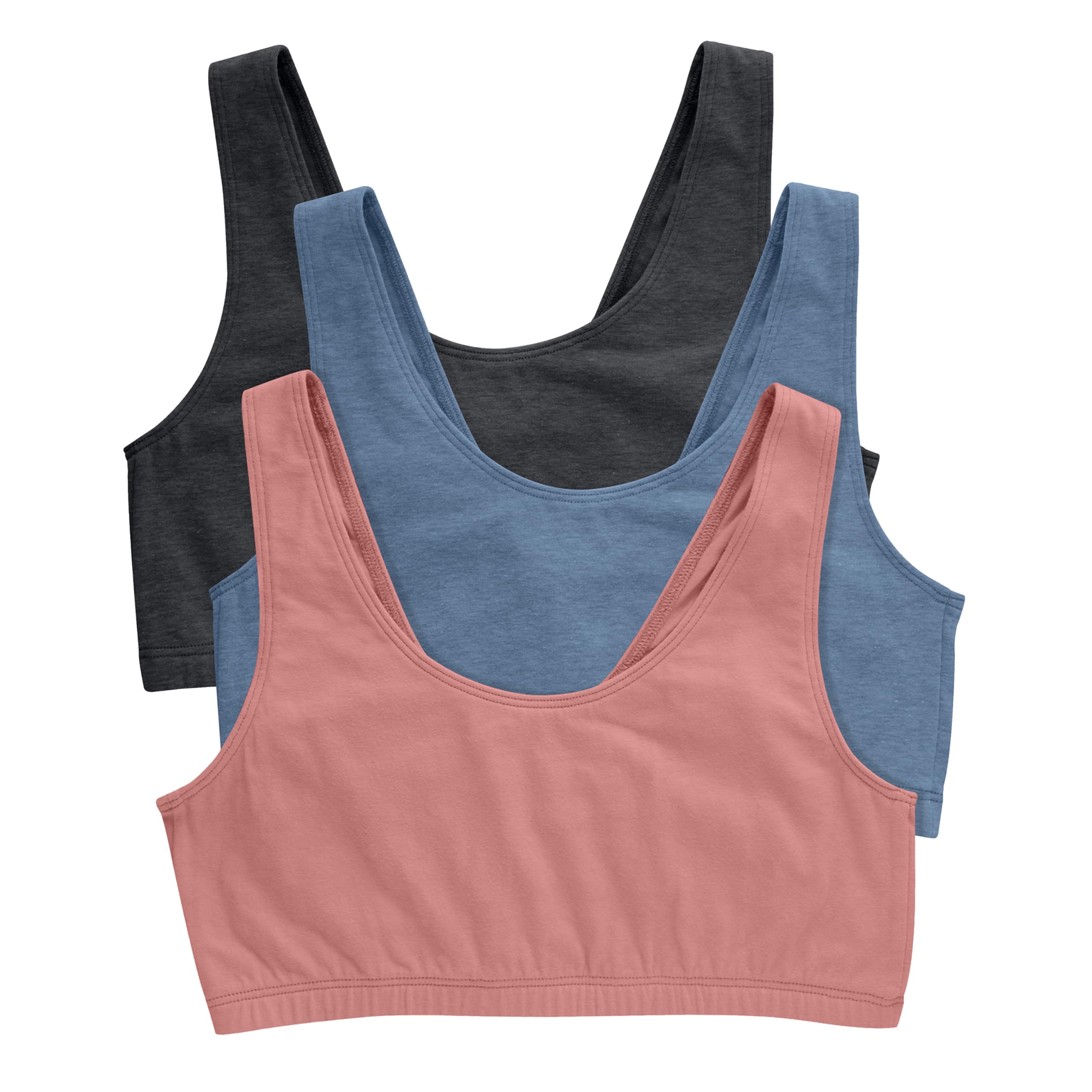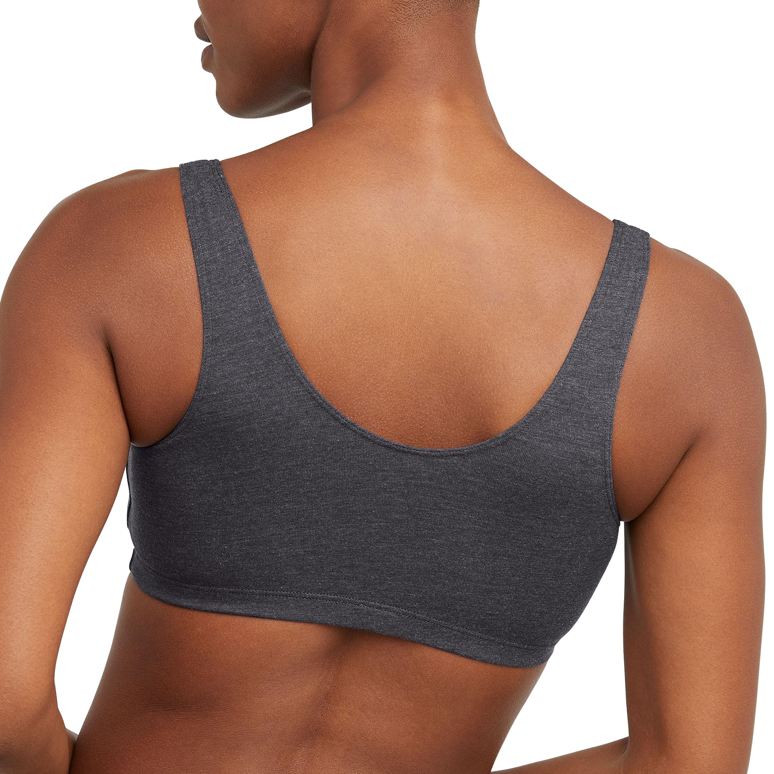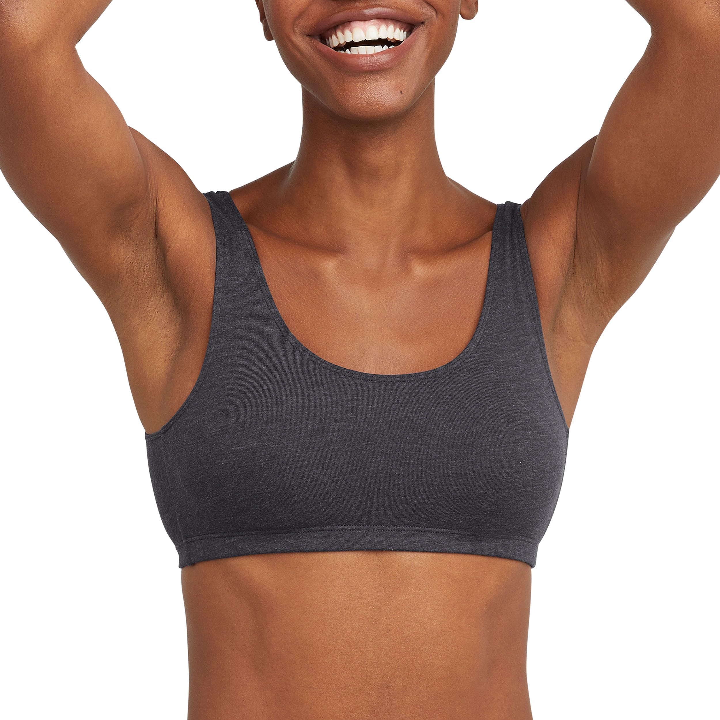 Looking for a versatile, comfortable cotton knit bra top Look to Hanes® for this effortless bralette with endless wearing options. Wear this cotton knit bralette for low-impact workouts such as yoga, pilates, or walking. Or you can wear it on its own under a shirt or with shorts as a crop top on a summer day. Or wear it all day as one of the most comfortable light-support bras you'll ever own. This lightweight cotton jersey bralette is made with Hanes®' ComfortFlex Fit® 4-way stretch fabric for a flexible fit that moves every way you do. It's also made with Cool Comfort® fabric that wicks away moisture to keep you cool and dry all day. The 100% cotton knit is soft against your skin, and the scoop front and back with wide, no-dig straps offer smoothness under clingy clothes. Light support comes from the smooth bottom band. For layering or soloing, this comfortable cotton knit bra top will find all sorts of uses in your weekend or workout wardrobe.
