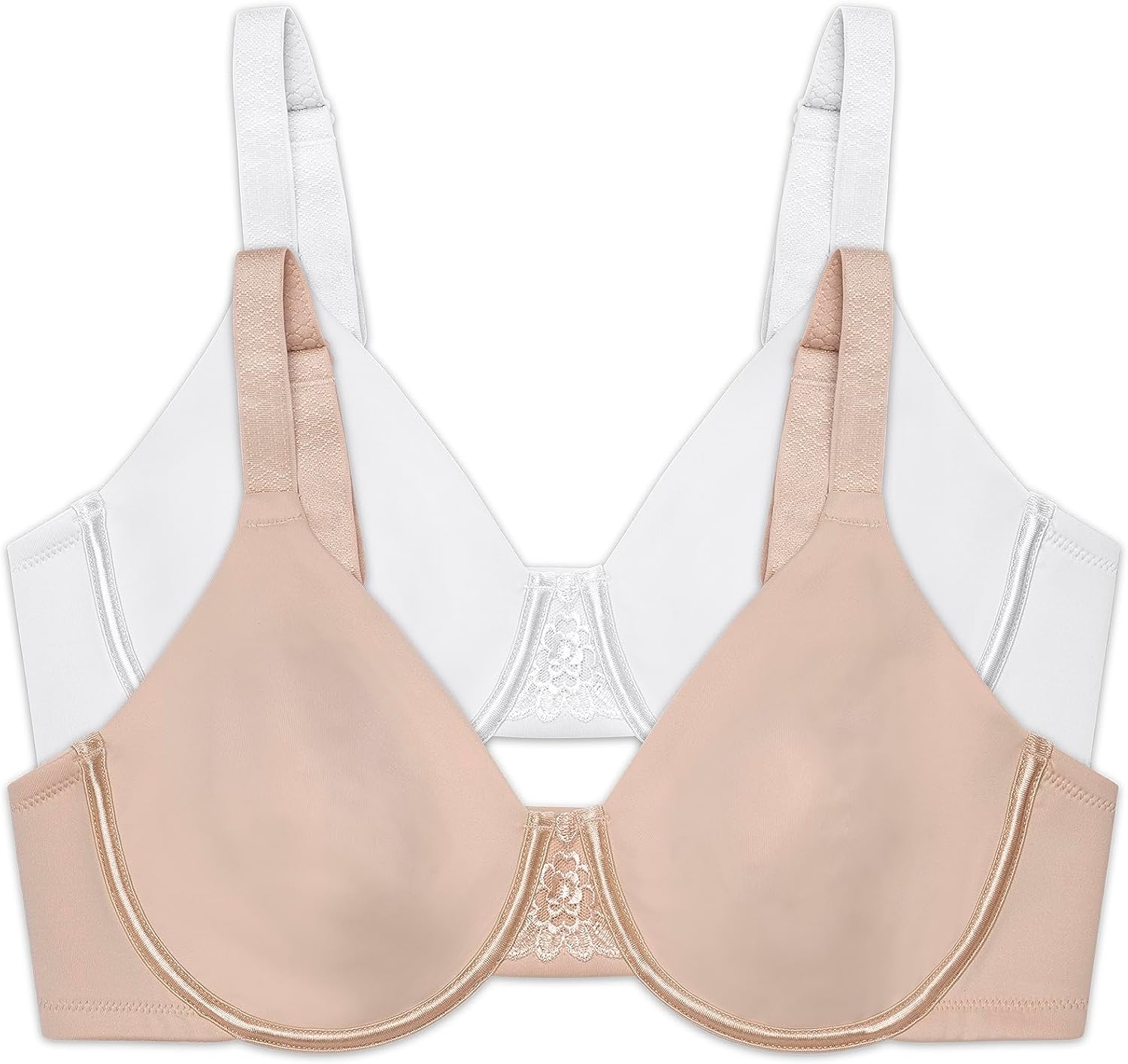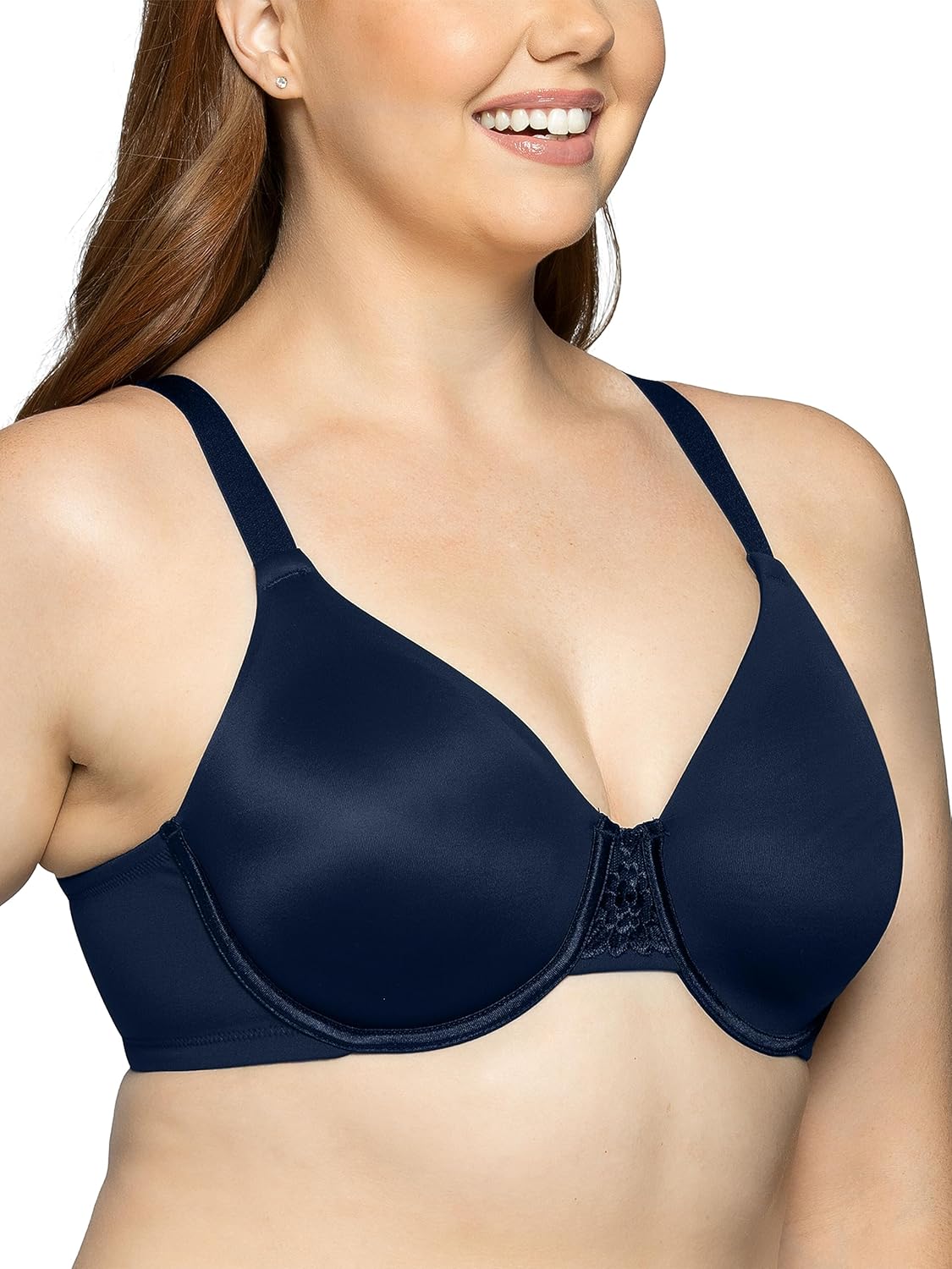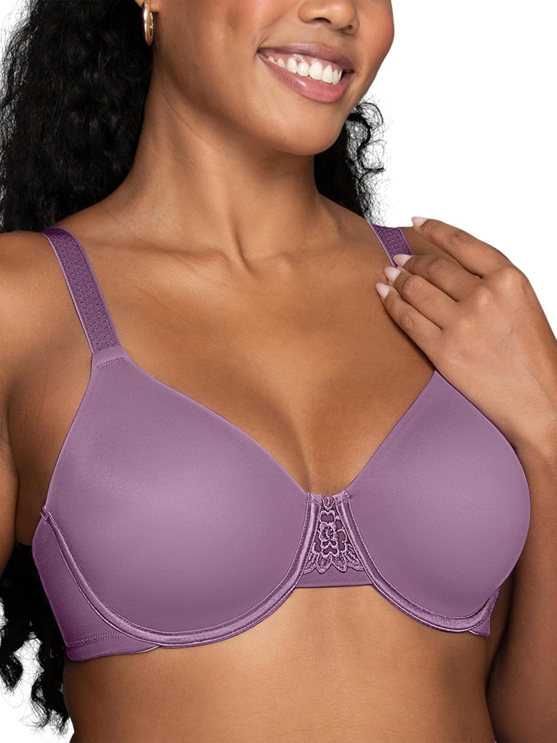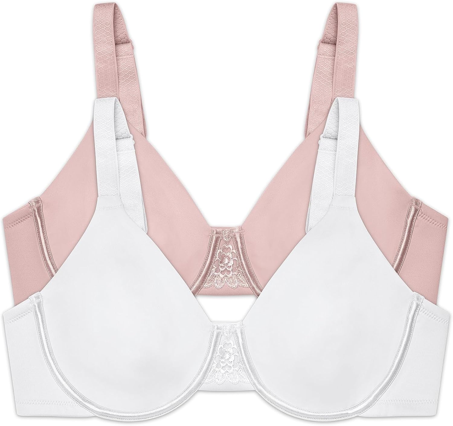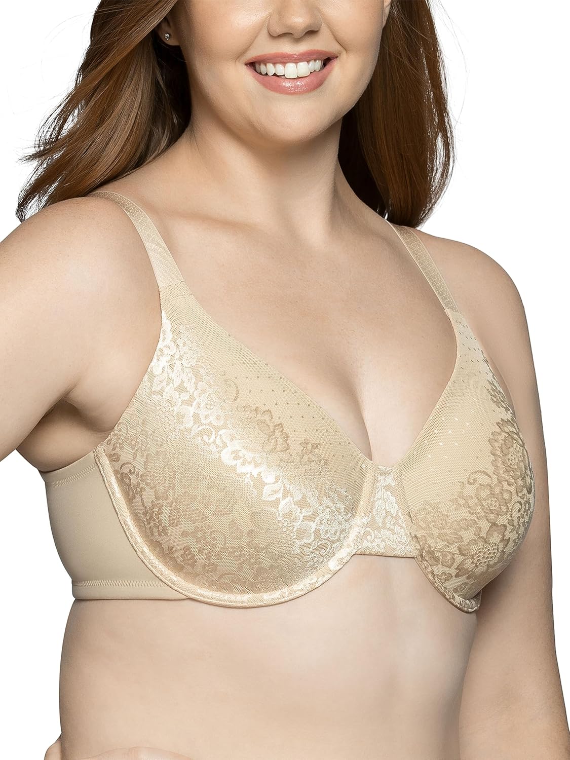 This Beauty Back Minimizer bra is made especially for fuller figures that want to reduce the bust line up to 1 ½ inches. Non-padded underwire cups provide the coverage and support that you need for all day comfort. The invisible neckline looks smooth under your favorite T-shirts and silky blouses. Wider, honeycomb cushioned straps adjust from the back, and the leotard back styling keeps the straps in place all day. The triangle center panel has an embroidered lace detail that fits flat against the breast bone.