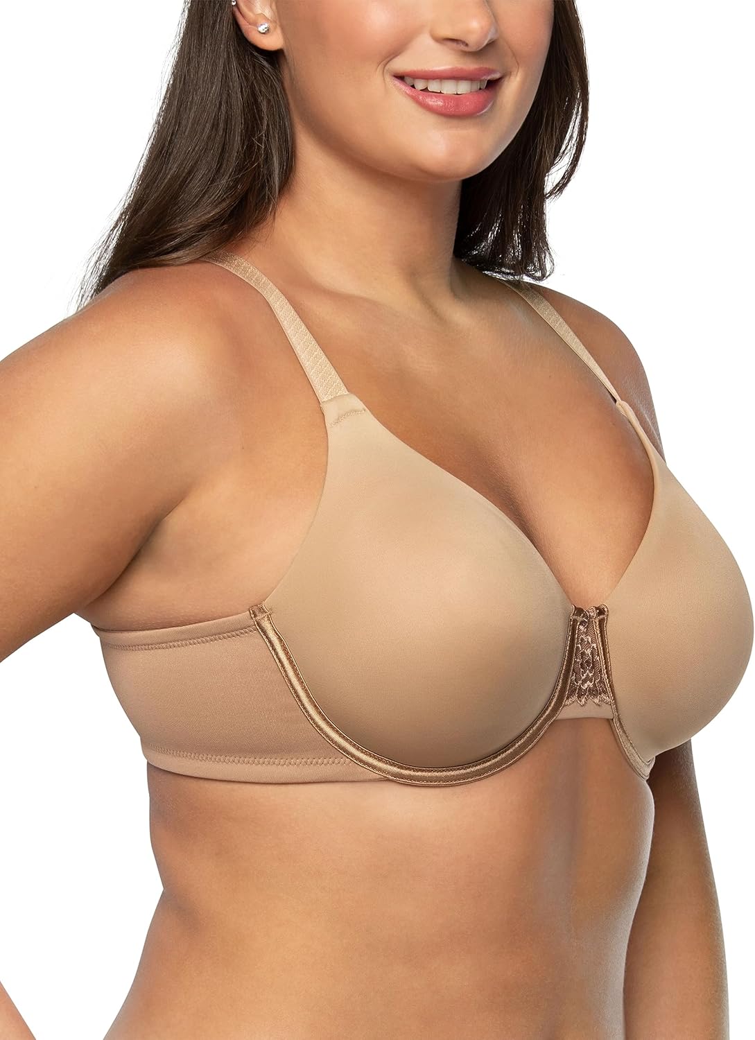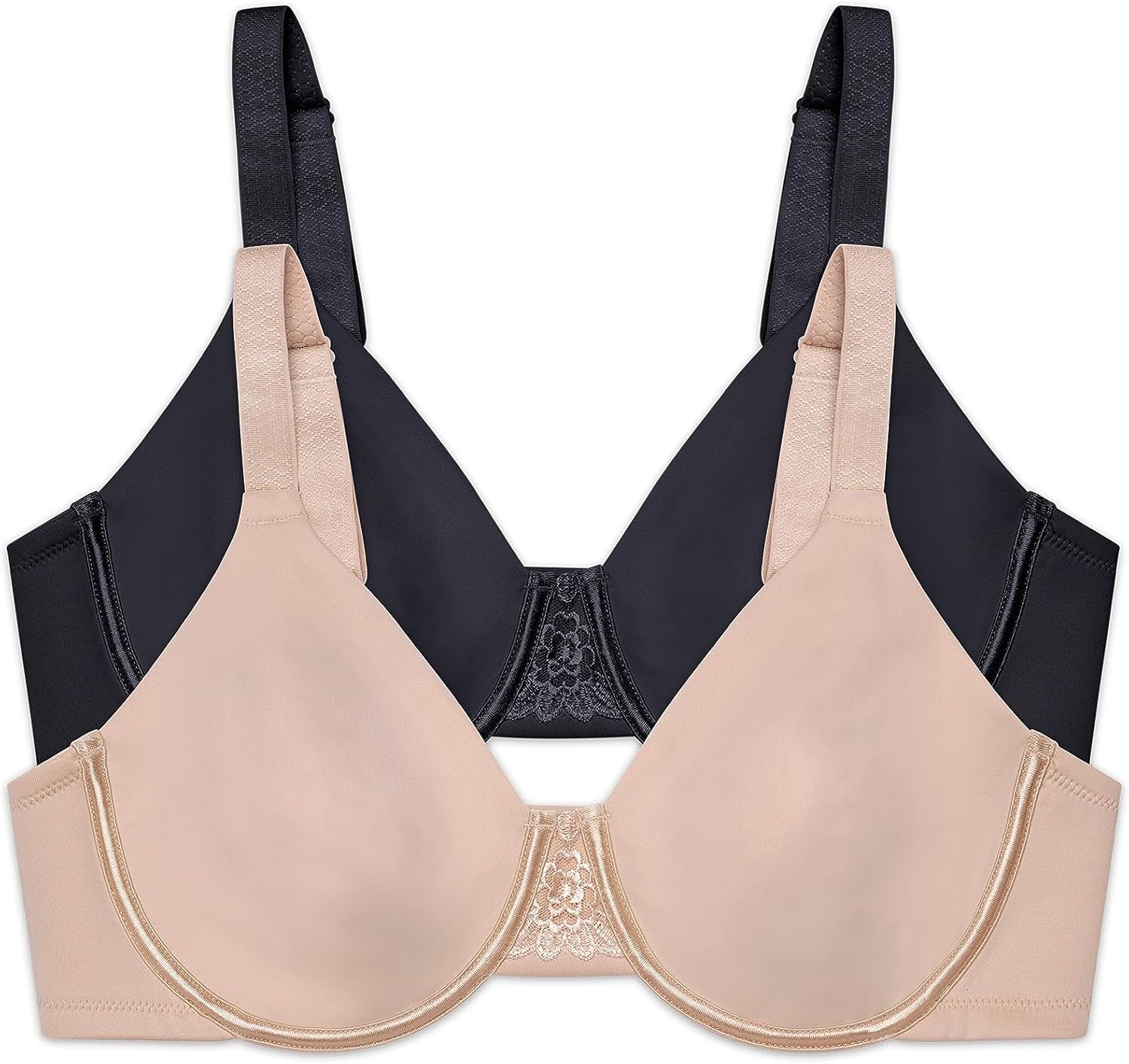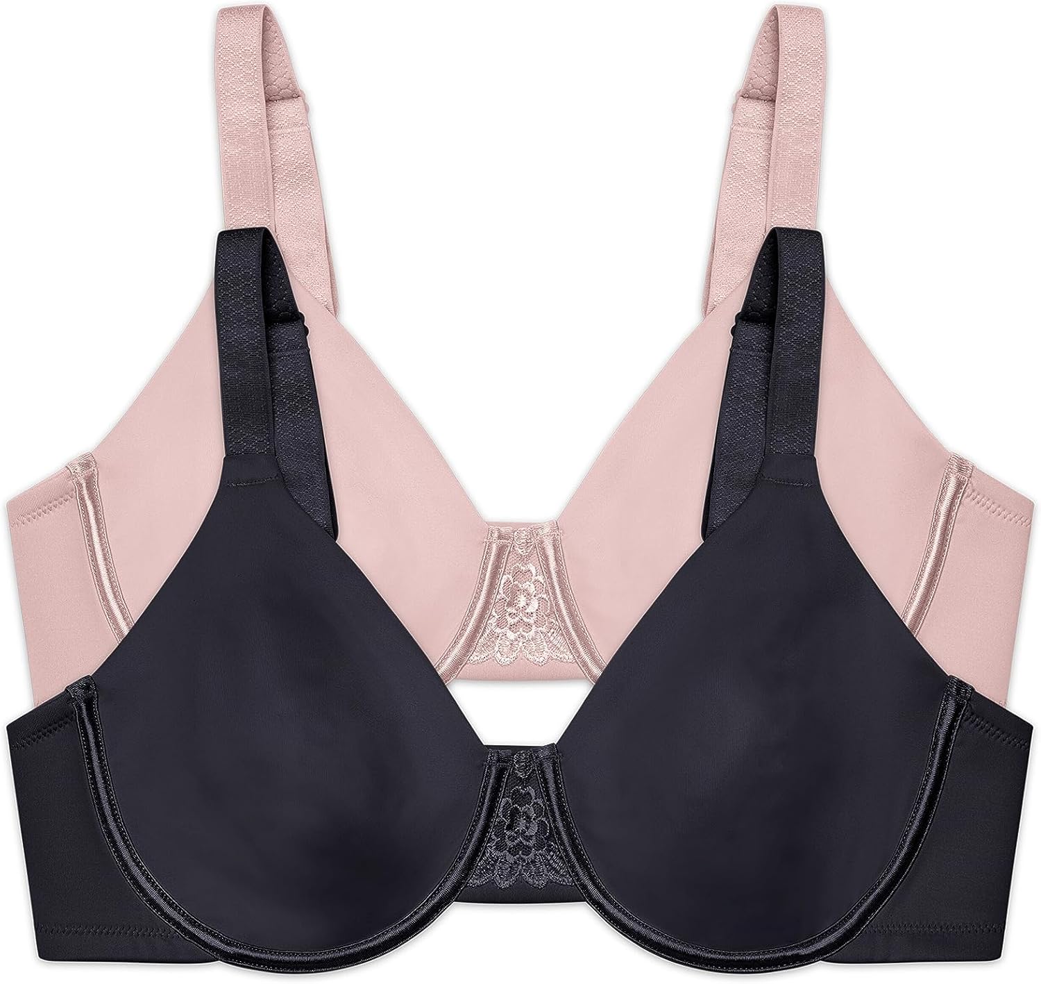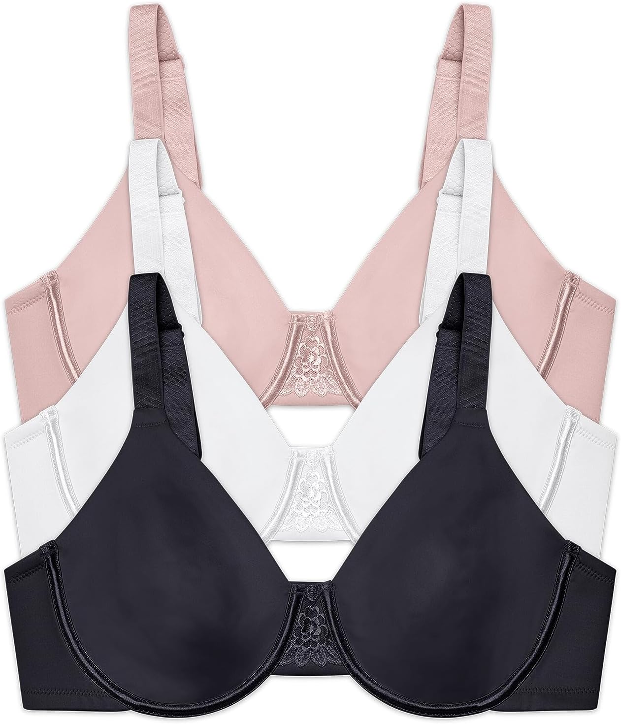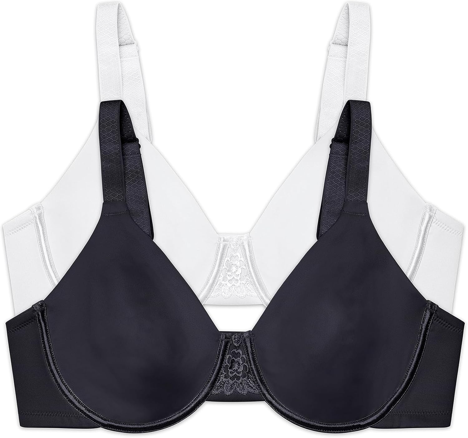 This Beauty Back Minimizer bra is made especially for fuller figures that want to reduce the bust line up to 1 ½ inches. Non-padded underwire cups provide the coverage and support that you need for all day comfort. The invisible neckline looks smooth under your favorite T-shirts and silky blouses. Wider, honeycomb cushioned straps adjust from the back, and the leotard back styling keeps the straps in place all day. The triangle center panel has an embroidered lace detail that fits flat against the breast bone.