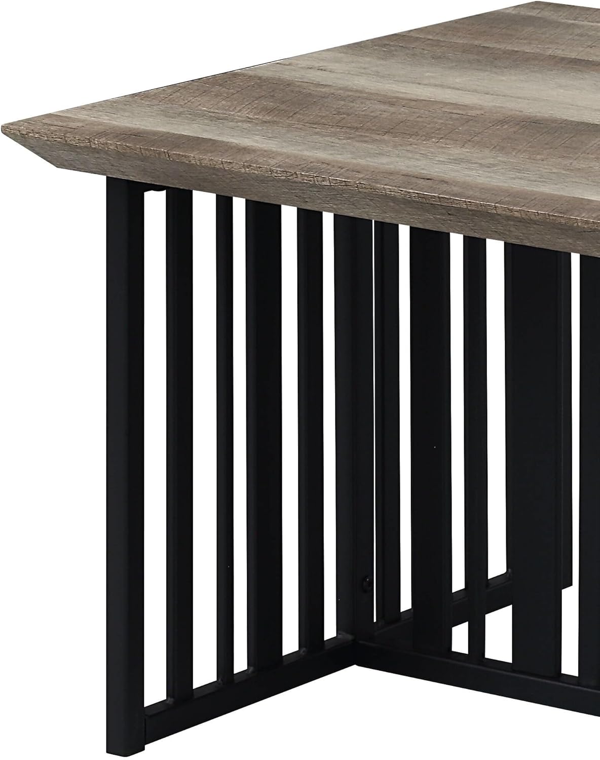 Experience the perfect fusion of timeless elegance and industrial chic with the Zudora Coffee Table in Oak/ Sandy Black. From its slatted wooden tabletop to its sleek metal legs, every inch of this piece has been crafted to perfection. Crafted from MDF and paper veneer materials, this dining table will remain a staple in your home for years to come. The metal legs, coated in an eye-catching sandy black powder, add an industrial edge to the design while providing a stable base for the tabletop. The Zudora's fixed tabletop eliminates any wobbling or unevenness, making this table perfect for any occasion.