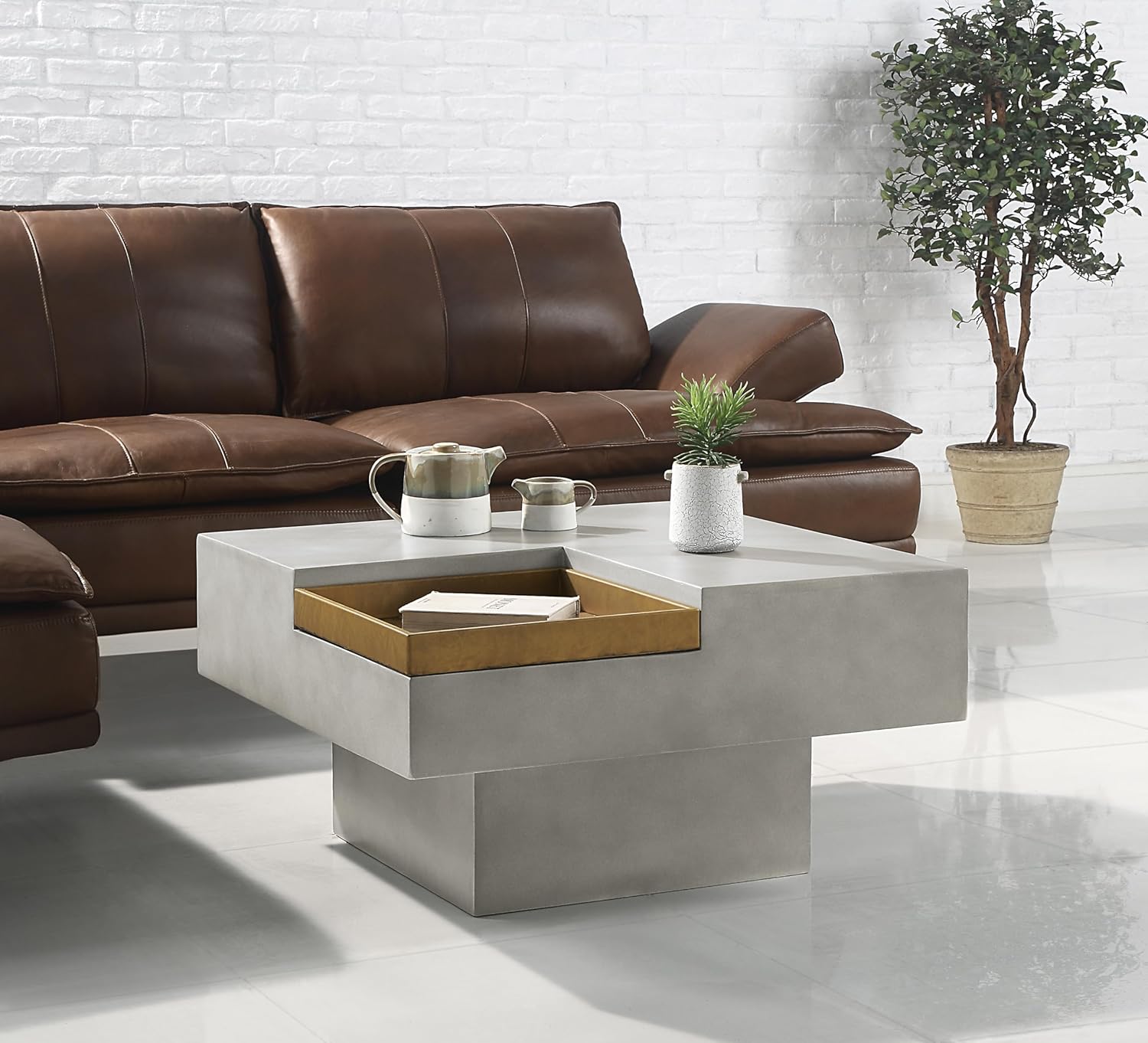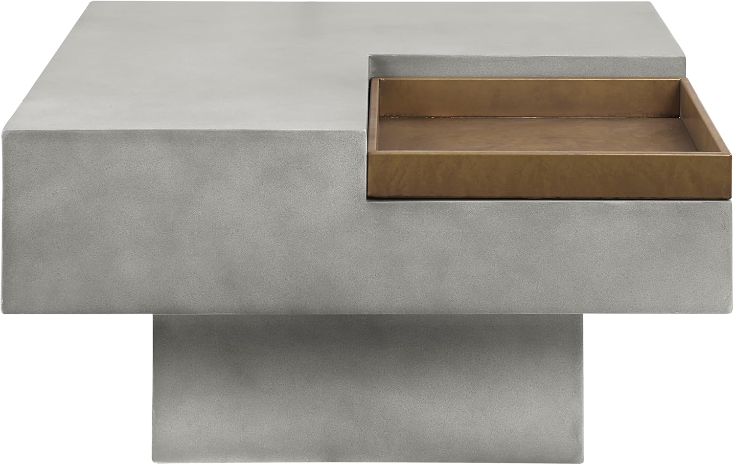 Glam comes in many forms, and this edgy modern coffee table reflects one that inspires. Clean lines and an obvious minimalist vibe begin a style journey perfect for adding to the precise décor you’re seeking. This square coffee table is built of eco-friendly fiber cement, reflecting contemporary values and adding an earthy vibe. With a weathered gray finish, this pedestal-style coffee table is neutral and versatile.