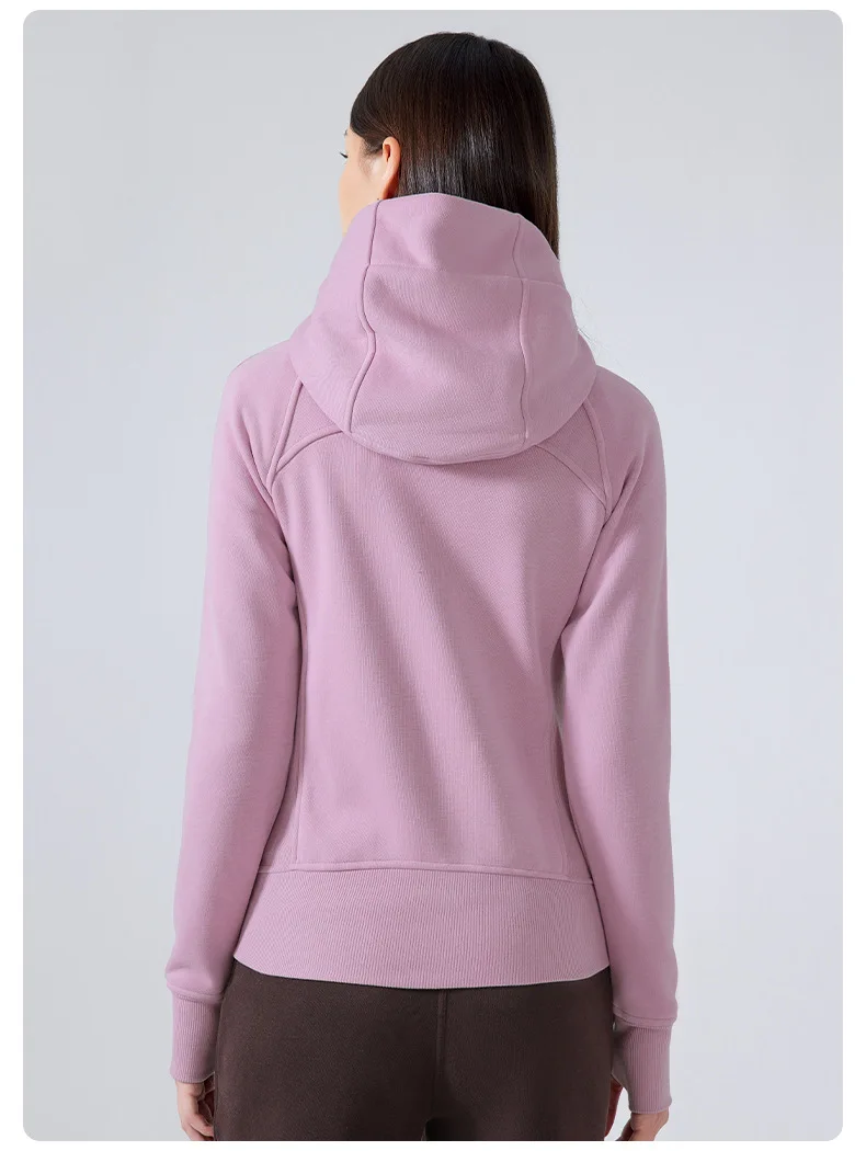 Xsunwing Custom Logo Fitness Coat Sports Wear Outwear Women Running Jackets With Thick Full Zip up Face Hoodie Sweater WDQ028-4