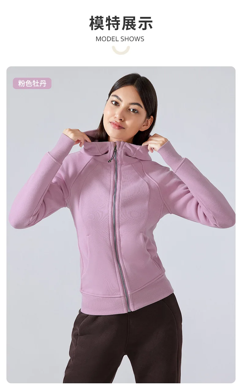 Xsunwing Custom Logo Fitness Coat Sports Wear Outwear Women Running Jackets With Thick Full Zip up Face Hoodie Sweater WDQ028-8