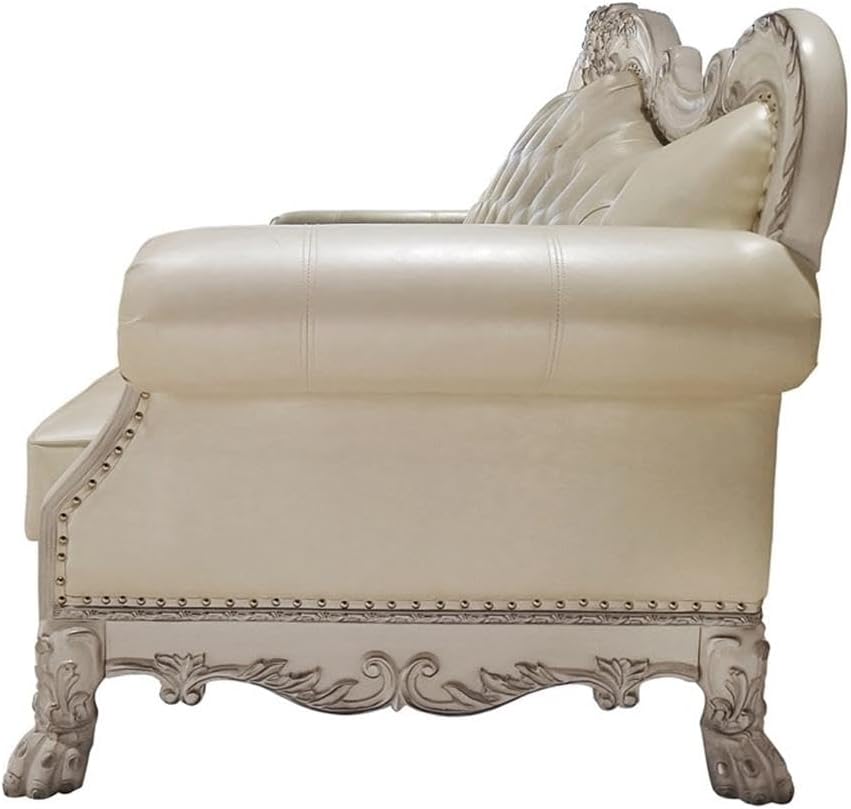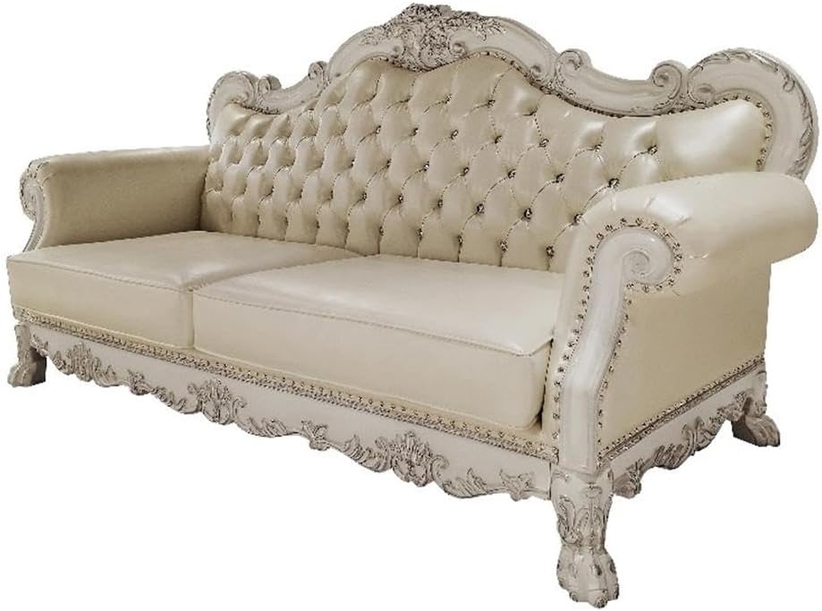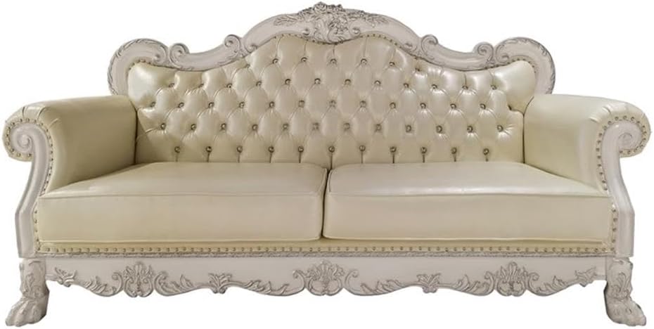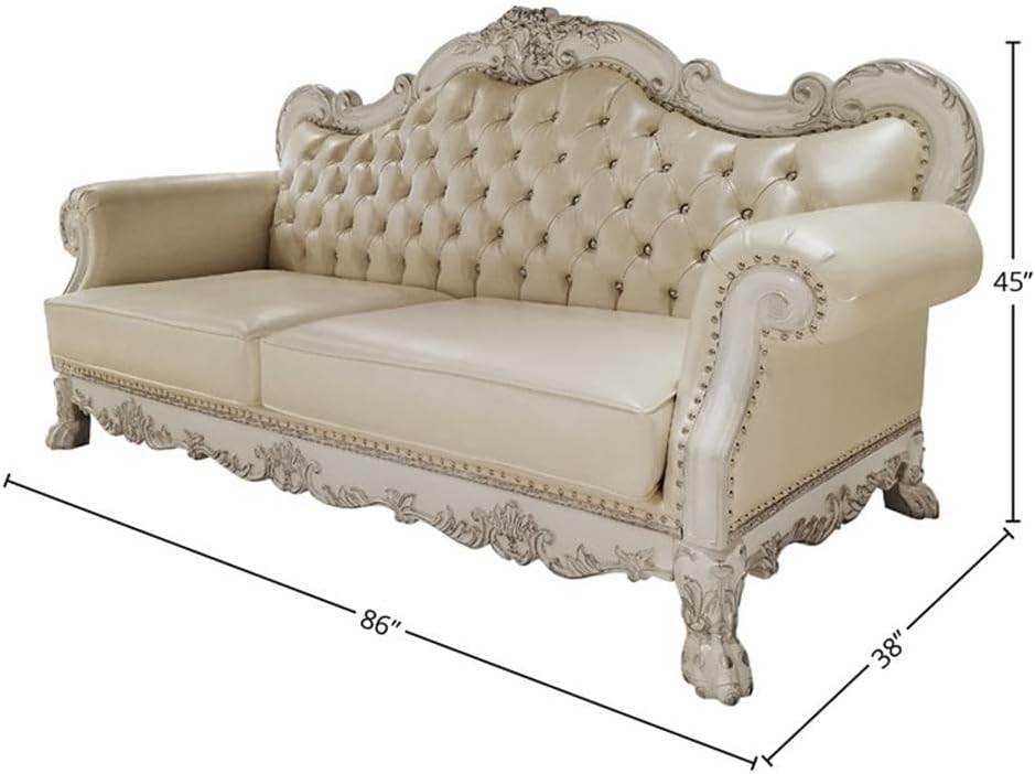 Elevate your living room with the Dresden 38" Wide Upholstered Sofa. This exclusive design has an elegant floral pattern that gives your home an inviting ambiance. The seat construction is made of pocket coil, with loose seat cushions, and a tight back cushion that's perfect for relaxing after a long day. The button-tufted backrest adds a classic touch to the sofa's design. The claw legs are sturdy and add a touch of sophistication to the piece. Furthermore, the sofa features nail head finishing that outlines its curves and accentuates its design.