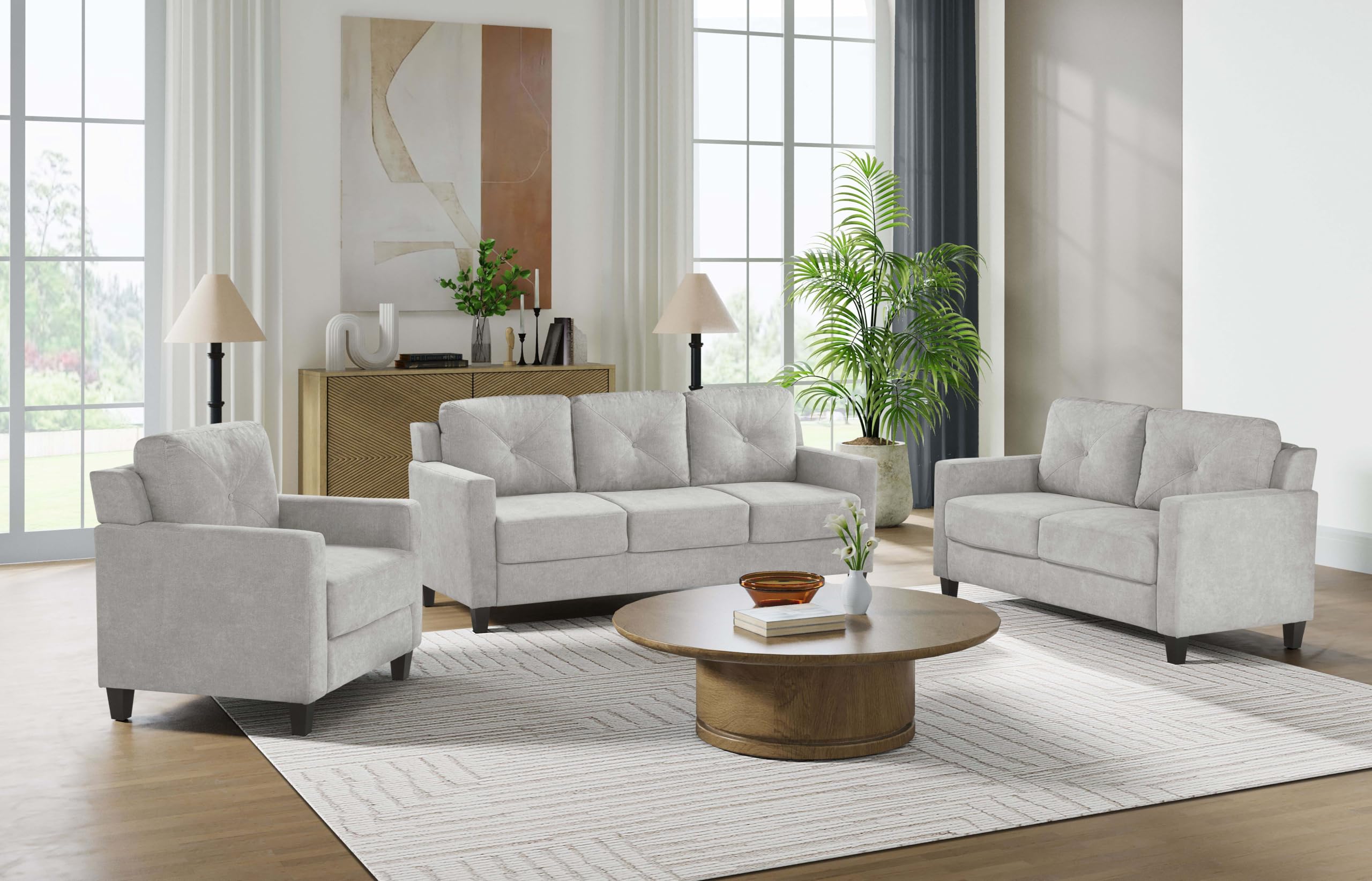 Experience ultimate comfort and style with Horatio Taupe Chenille Sofa.The tight back and seat cushions ensure a comfortable seating experience, supported by pocket coil construction and a sturdy wooden inner frame. This piece is perfect for creating a modern, elegant living space that combines style and comfort seamlessly.