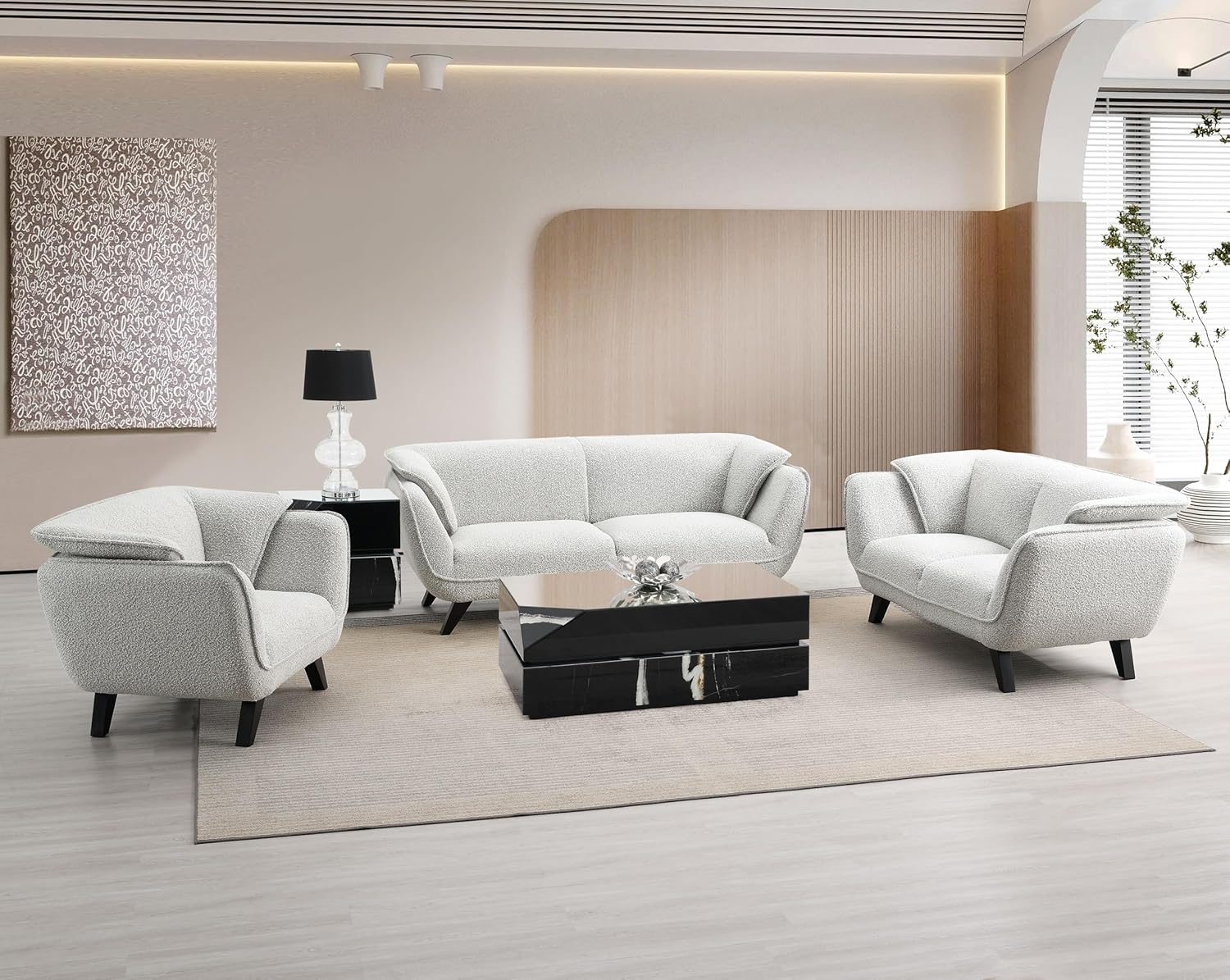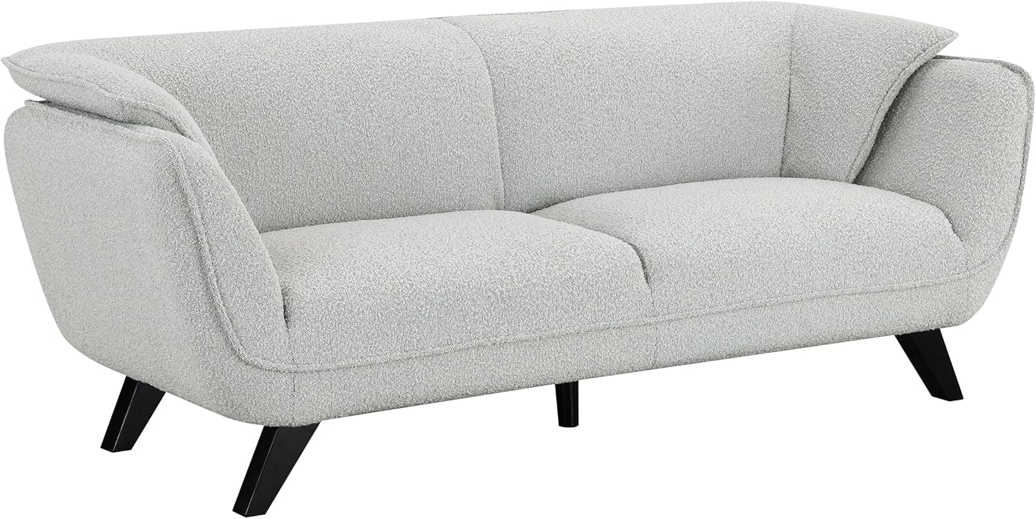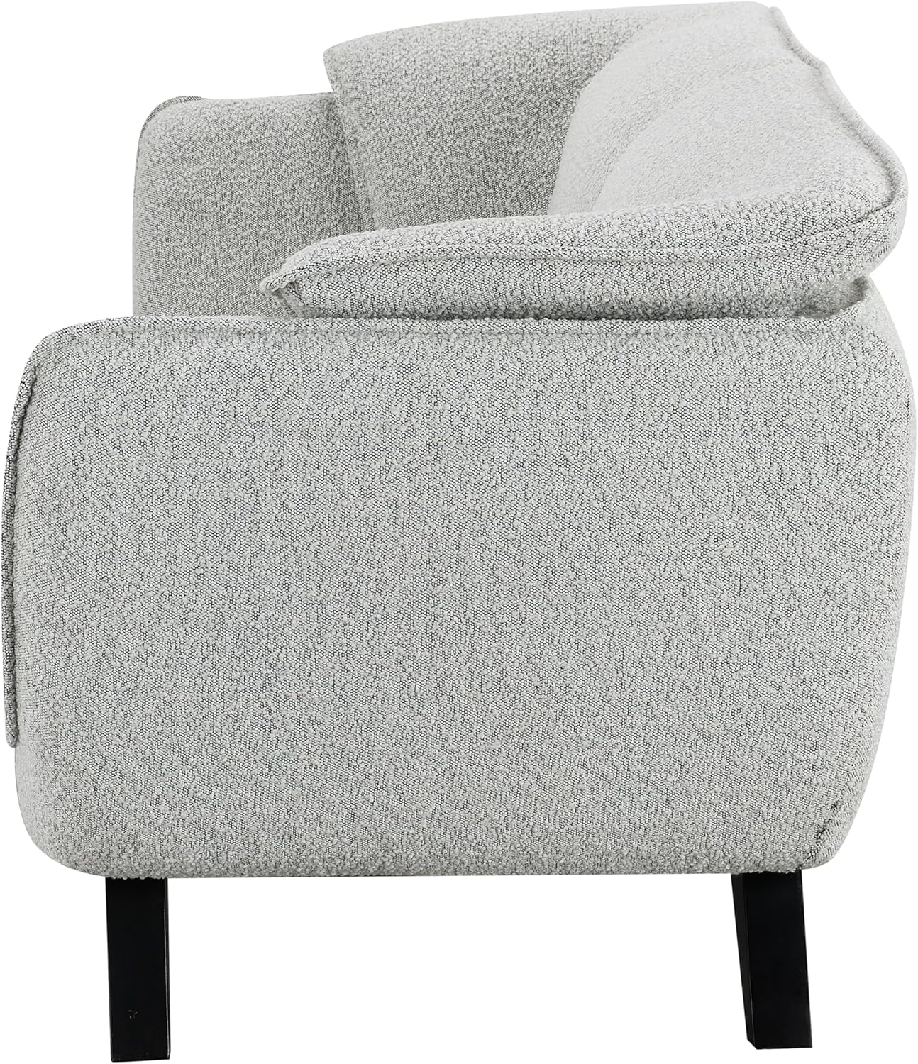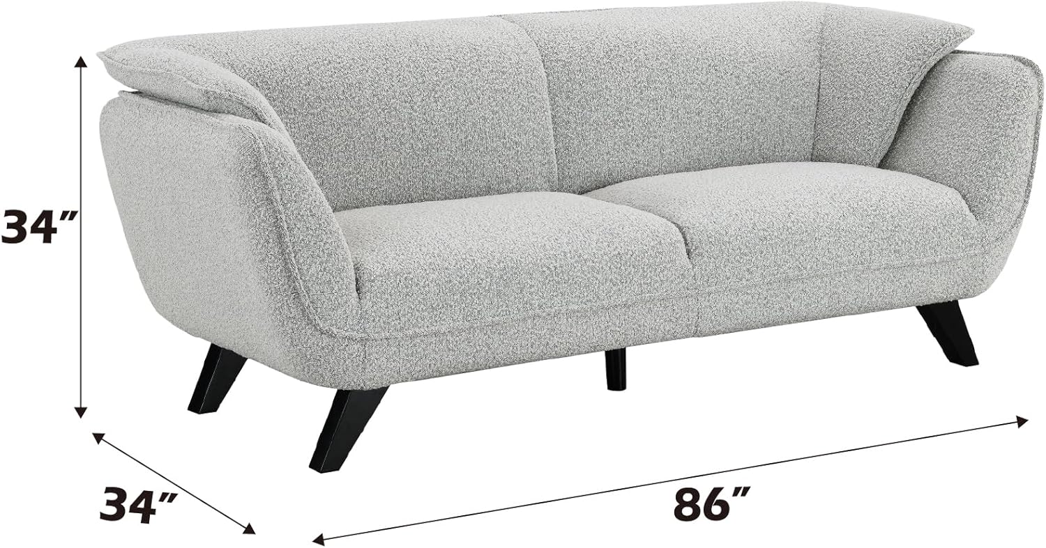Unwind in the sophisticated charm of the Nayeli sofa, draped in light gray fabric. Accompanied by plush cushions, it offers a perfect blend of comfort and style. This sofa invites cozy conversations and serene relaxation, making it an ideal addition to any living room. Its timeless elegance and contemporary design promise to elevate your home decor, creating a welcoming ambiance for all who enter.