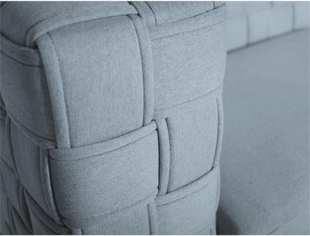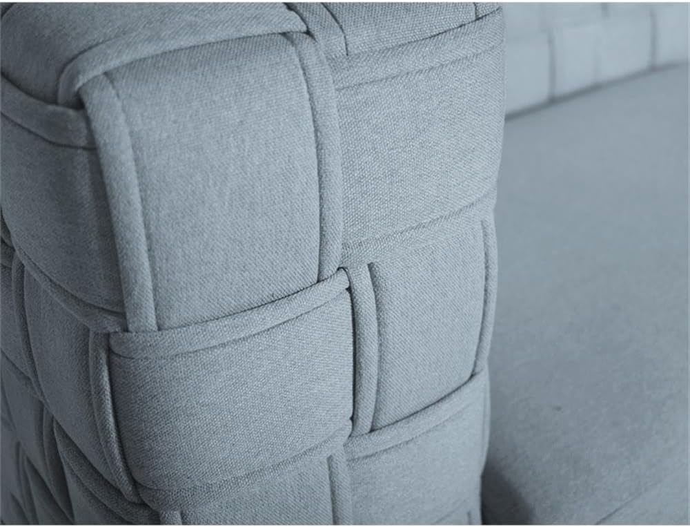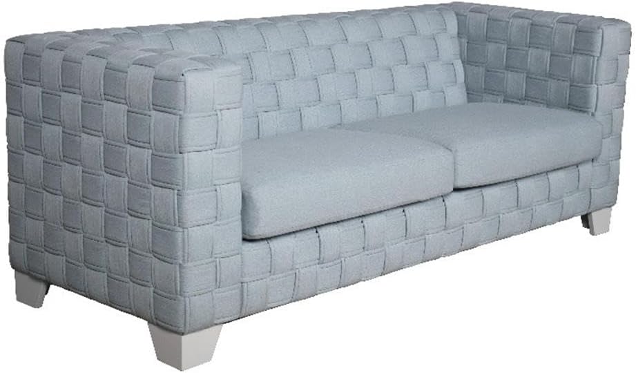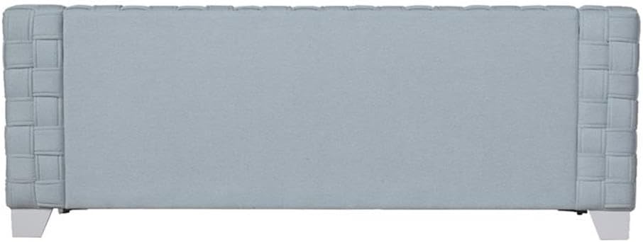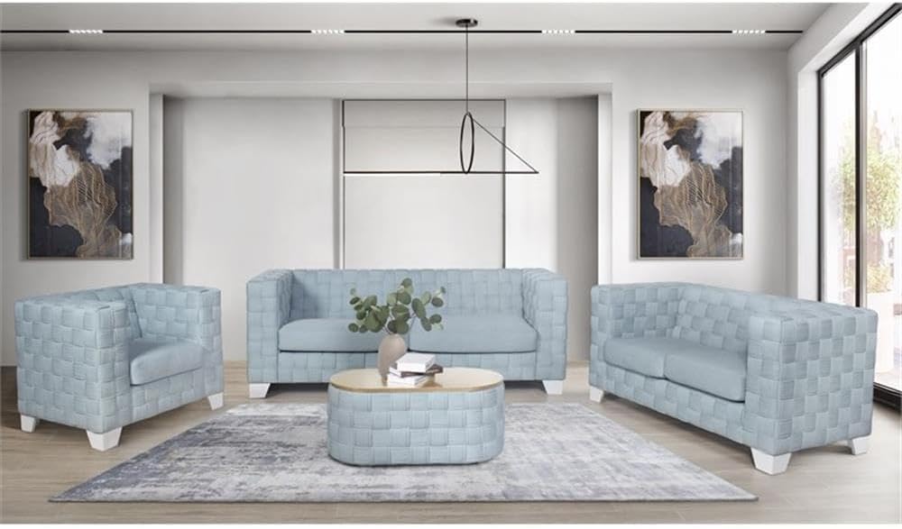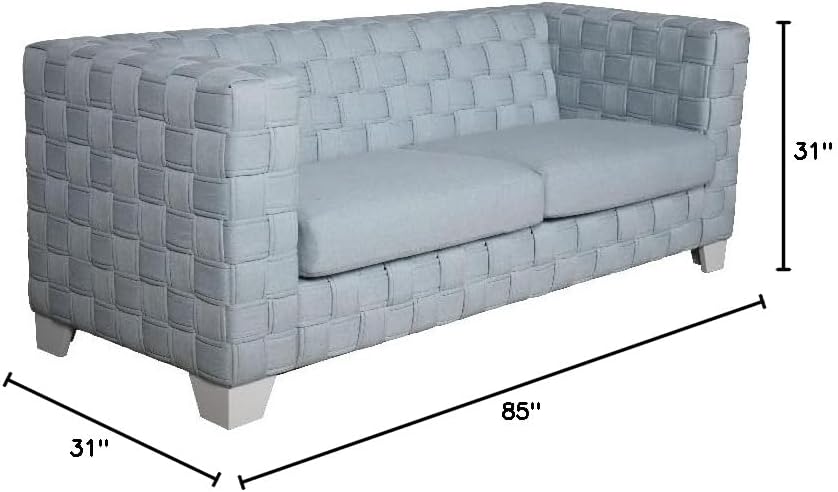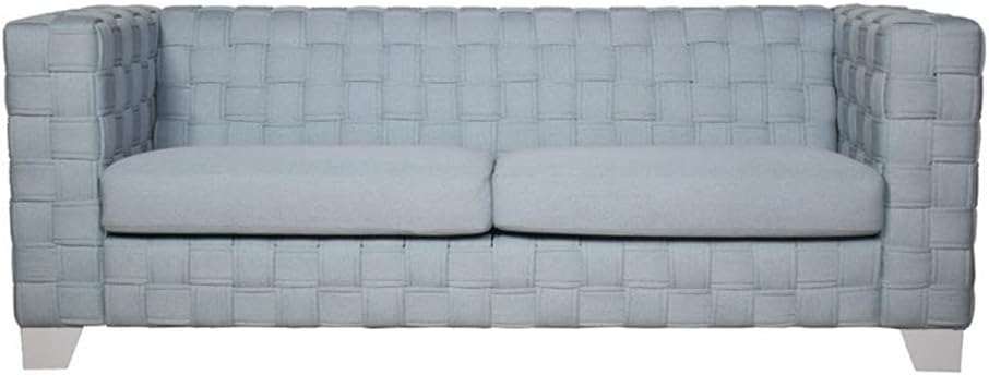 The Saree sofa uses simple lines to create a striking boxed-shaped silhouette. This sofa delivers a unique aura into any living space with its light teal chenille and white finish. It is designed using a unique knitting process that adds texture and depth; this makes the pieces bold and lively in appearance. The pocket coil seating makes it luxurious to lounge on.