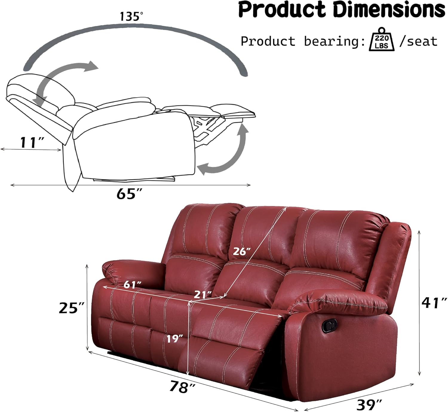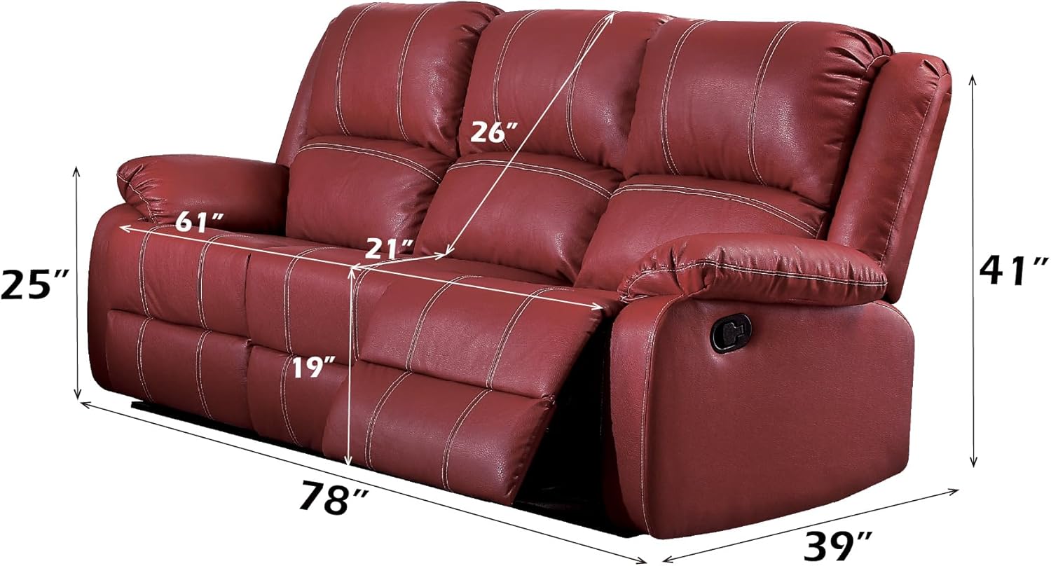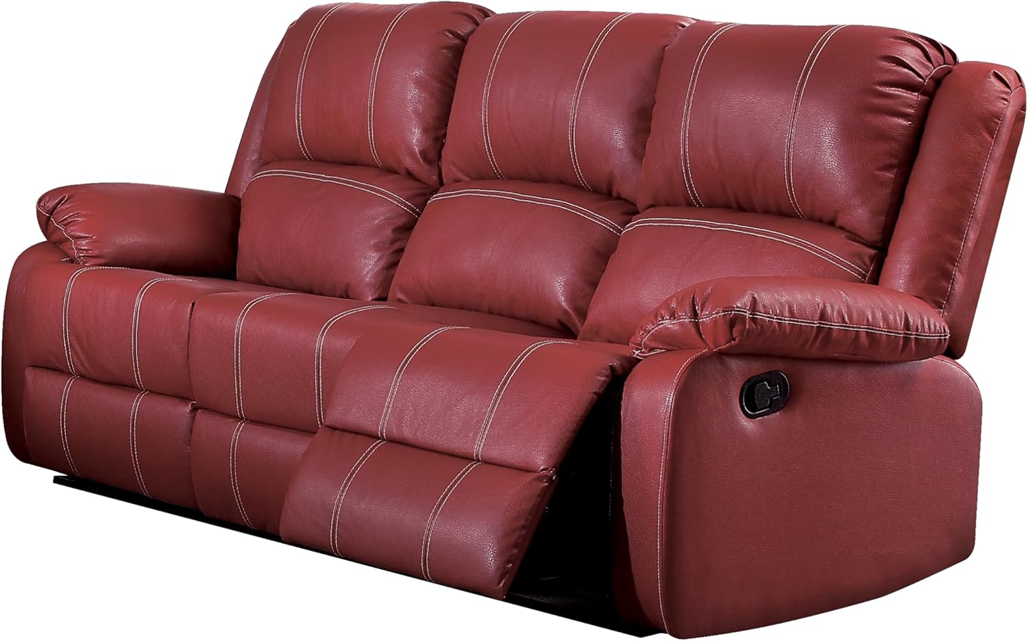 The Zuriel reclining sofa is a wonderful choice for any family room, combines luxurious faux leather with the comfort of padded, reclining seating. Comfortable contoured seats, soft to the touch while the reclining footrests offer full leg support. Fully upholstered body with pillow top armrests is designed to provide unparalleled comfort and help you to unwind at any time.
