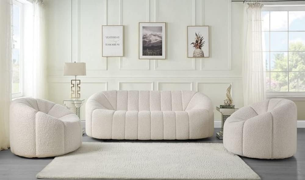 Osmash White Teddy Sherpa Tufted Sofa by Acme