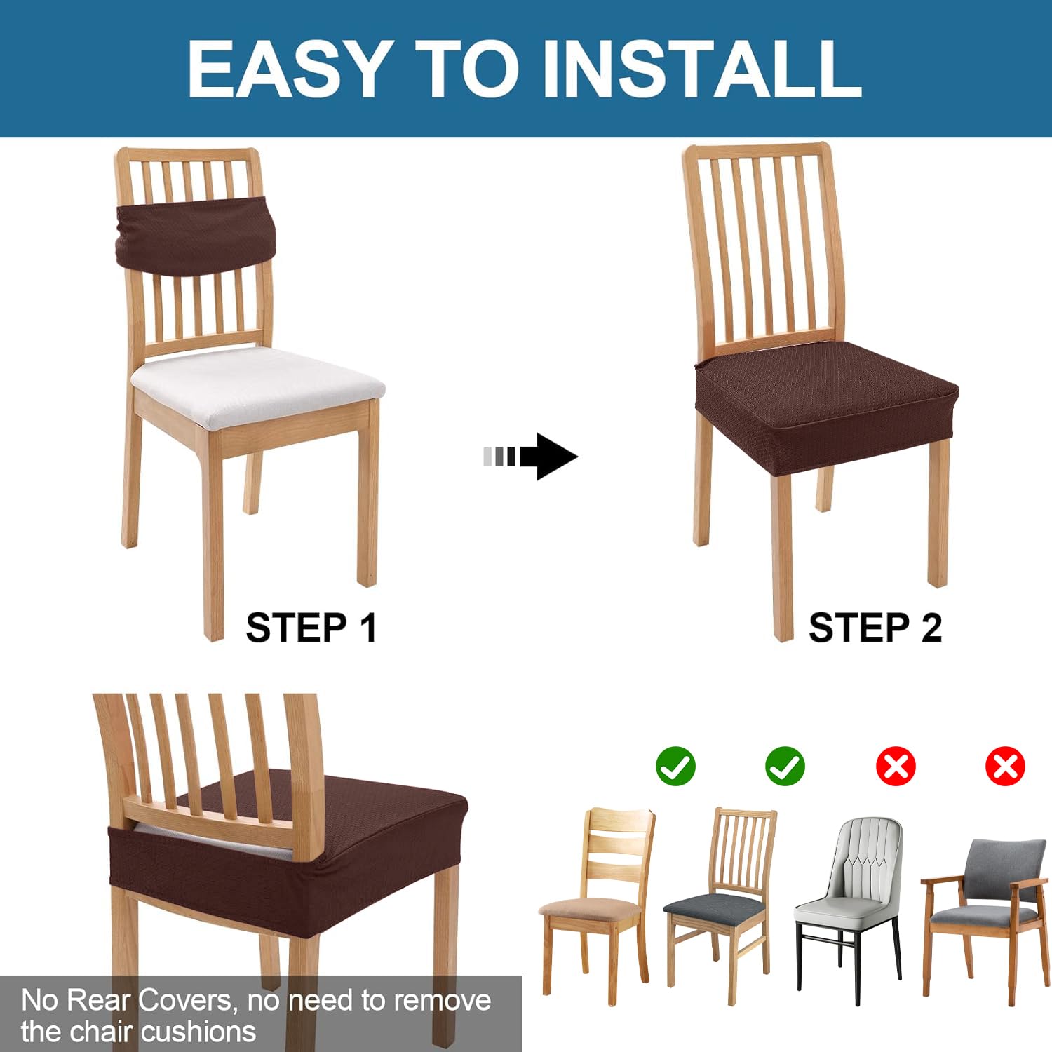 [Widely Use & Care] Smiry dining chair seat covers are suitable for upholstered chairs in kitchen and dining room. These spandex chair covers are great for room decor. Machine Washable. Do not bleach. No ironing. Tumble Dry Low