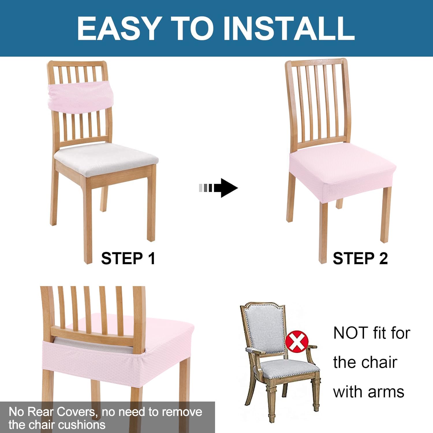 [Easy to Install] This dining room chair covers with Rear-gapped design, no need to remove the chair cushions, just slip on, elastic edges will secure the seat cover stay in place firmly, faster install and save time. ♥NOT Fit for the chair with arms