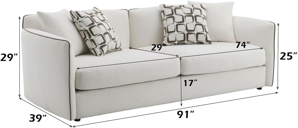 Loose Seat & Tight Back Cushion Full Foam Wooden Inner Frame Plastic Legs Pillows Included Removable Cushion & Pillow Cover Plastic Legs Fabric, Foam,Solid Wood Frame (Pinewood), Plastic Leg