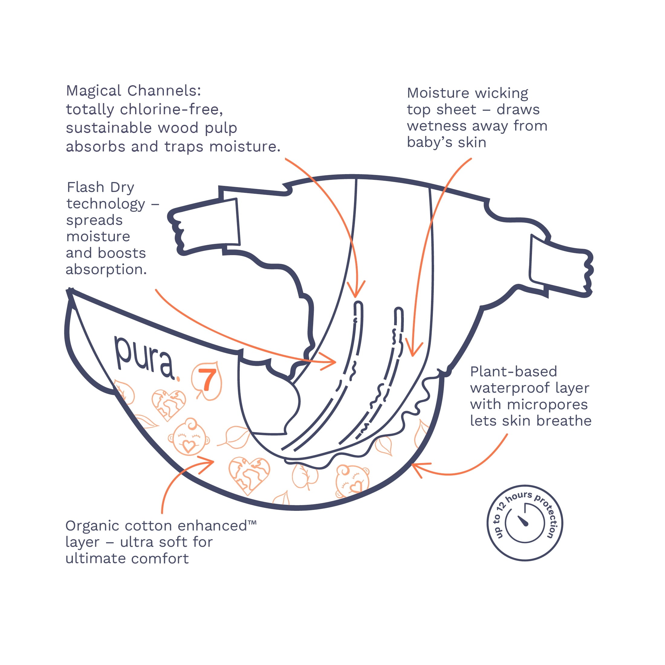We set out to create a high performance, low environmental impact diaper that doesn’t compromise on skin safety, comfort or value for money. Approved by dermatologists to be gentle on sensitive skin, our diapers provide up to 12 hours leak-free protection. Organic cotton enhanced, with plant-based materials against babies’ skin, they’re luxuriously soft and verified by Allergy UK as skin-safe as well as EU Ecolabel verified to have a low environmental impact. Meet the Pura family Pura didn’t start in a boardroom. It was born in the British home of Guy and Abi Fennell. Created by parents, for parents, Pura was founded to make clean, safe and planet-friendly products affordable for all. Pura is a Carbon Neutral business and a certified B-Corp.
