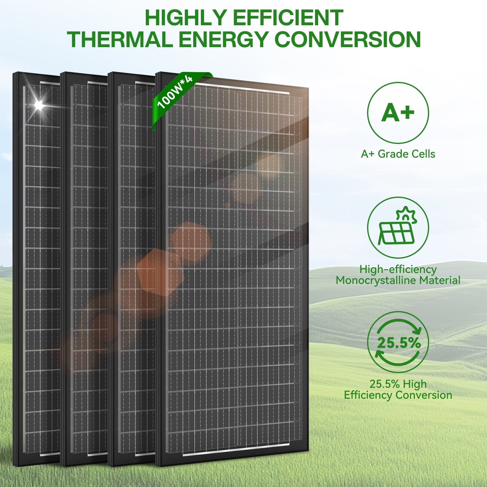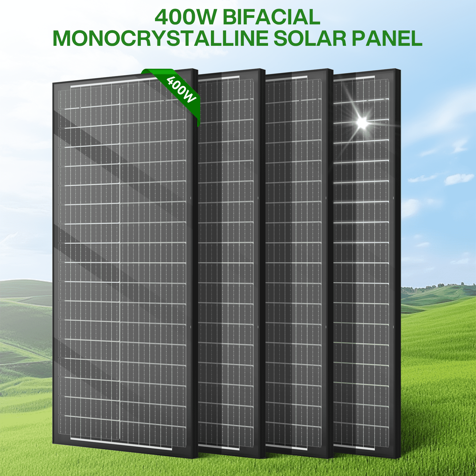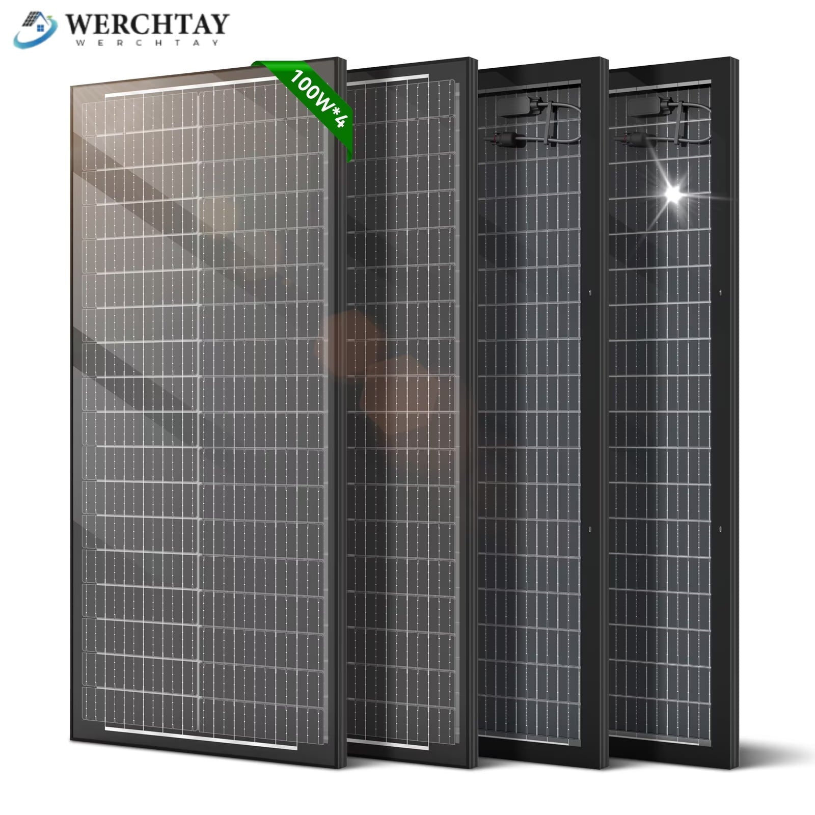 400W Bifacial Solar Panel 100 Watt Solar Panel 4 Pack, 12BB 12V/24V Mo