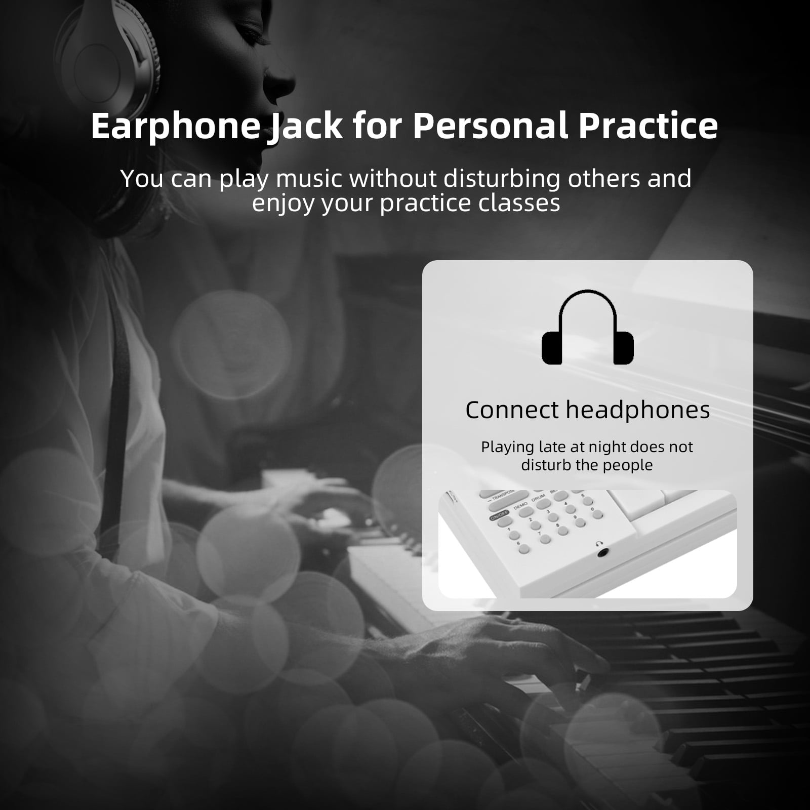 Folding Digital Music keyboard with 61 keys providing a natural , responding to your knocking and allowing for more expressive and dynamic performance whilst maintaining a portable and compact design. It features 100 rhythms, 16 tones, 15 Demo songs, various drum and beat sound effect, metronome, transpose, follow, recording, and playback enabling an infinite array of potential musical possibilities. The keyboard piano features built-in speakers, headphone output, and speed adjustment allowing you to practice, perform, and create your own masterpiece.
