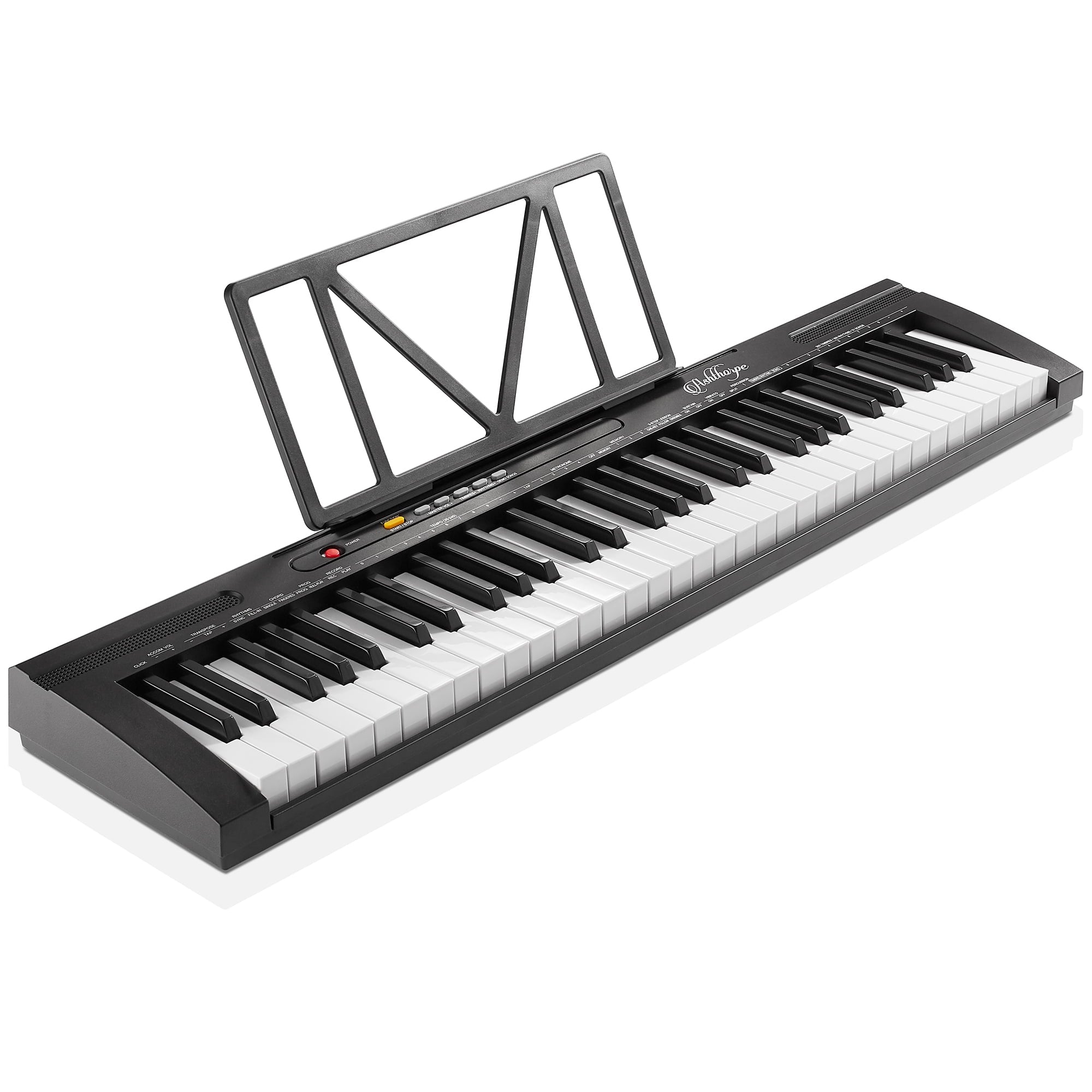 For beginners and those just learning the keys, the 61-key electronic keyboard piano with music stand from Ashthorpe is one of the best options around. With full-size keys, this digital keyboard offers the right specs and features to make learning fun. For parents who want to introduce young aspiring musicians to playing the piano or keyboard, or students looking to explore the instrument further, this is the perfect choice. Keyboard package includes an adjustable keyboard stand, padded stool, sheet music stand, headphones, microphone, DC 9V/AC power adapter, and keynote stickers. This is an excellent option for beginners, intermediate, advanced, and professional musicians. The full-size keys allow players the traditional feel for playing the piano. Whether for creating original music, recreational jam sessions, or a live performance recital, musicians at every level will enjoy playing this keyboard.