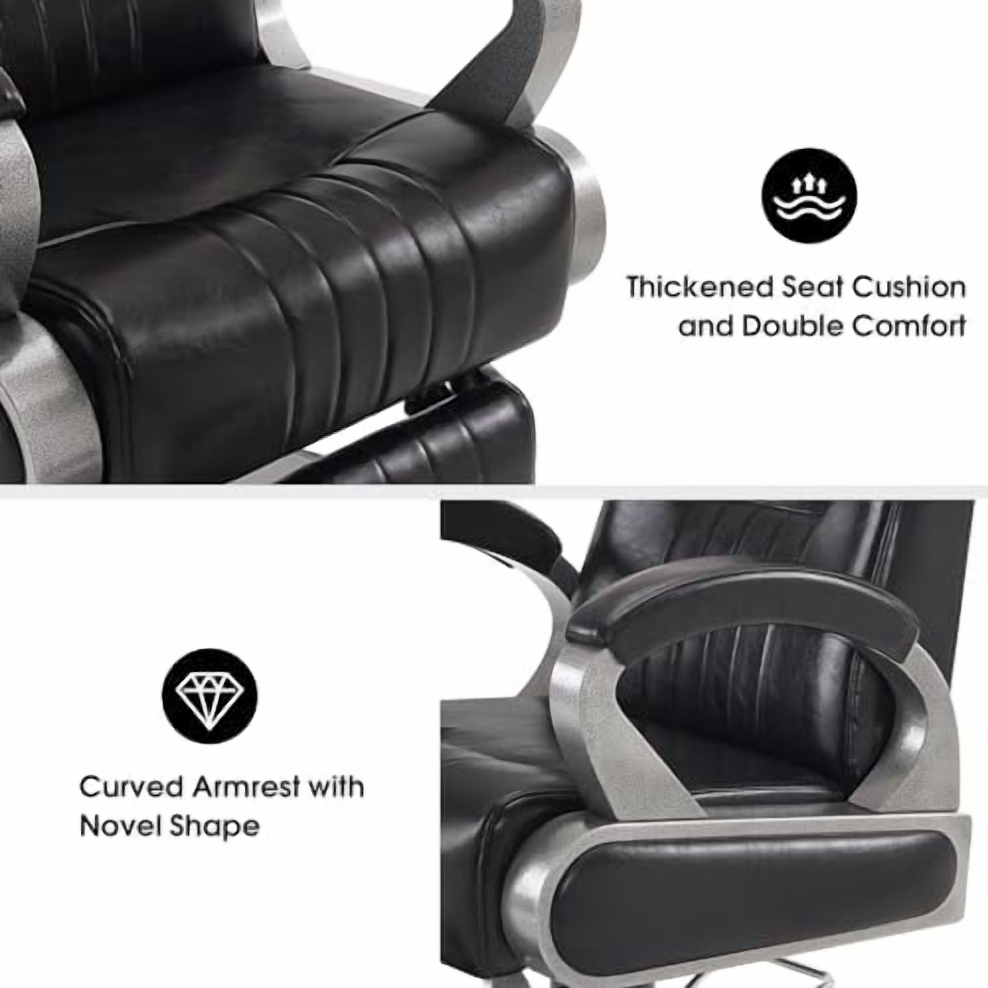 This upgraded vintage Large barber chair features a thickened seat cushion and backrest, paired with a high-density sponge and soft imitation leather for a more comfortable experience. In particular, we use durable iron armrest and make curved armrest with novel shape to add cuteness and design sense to this chair, which is the perfect combination of classical and retro.