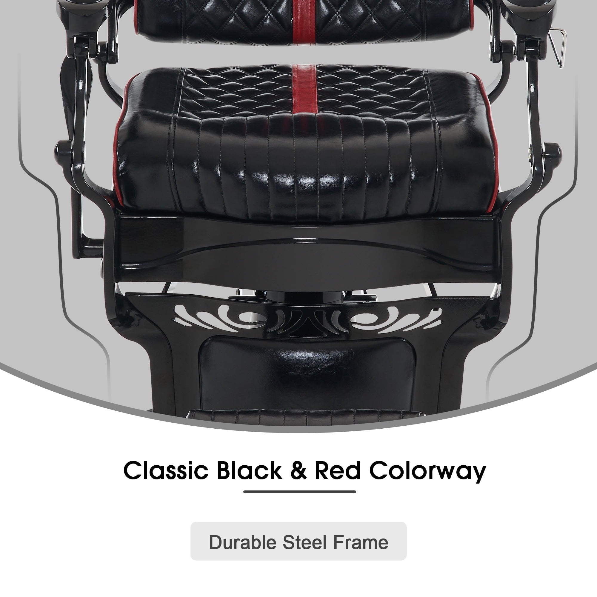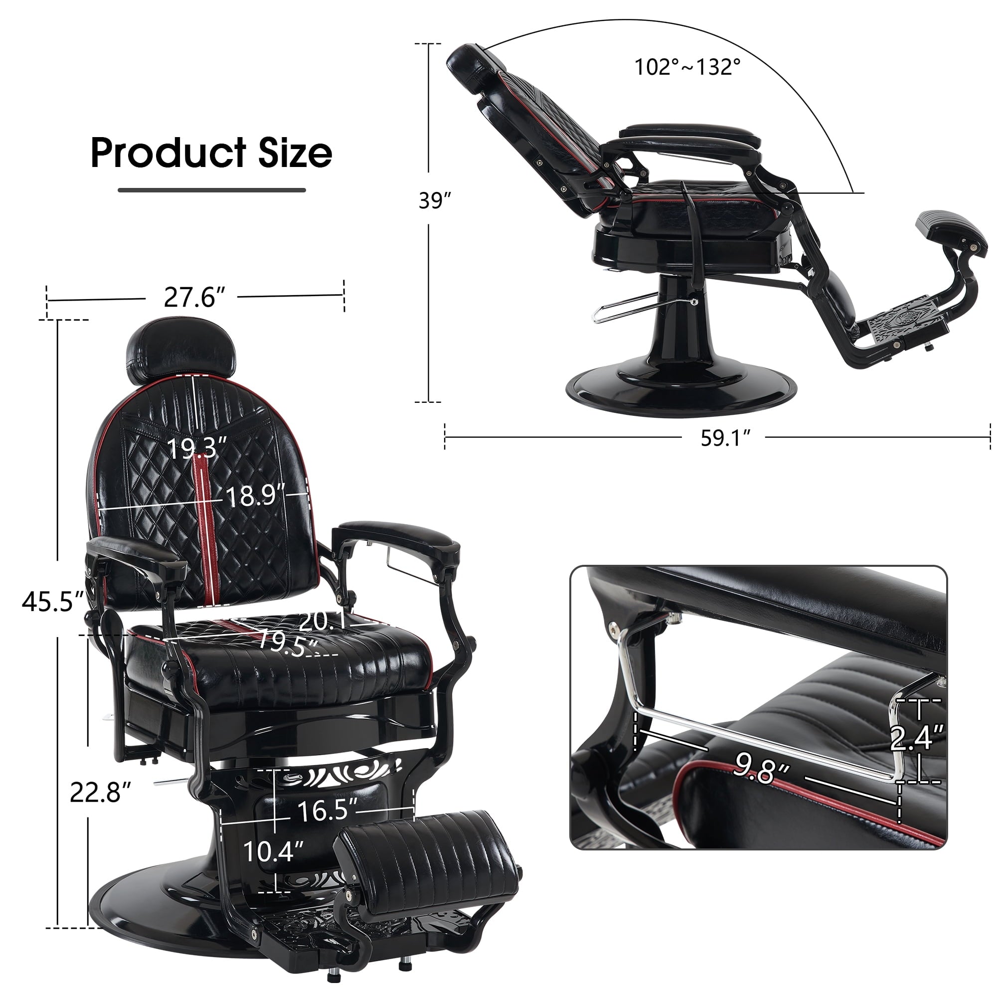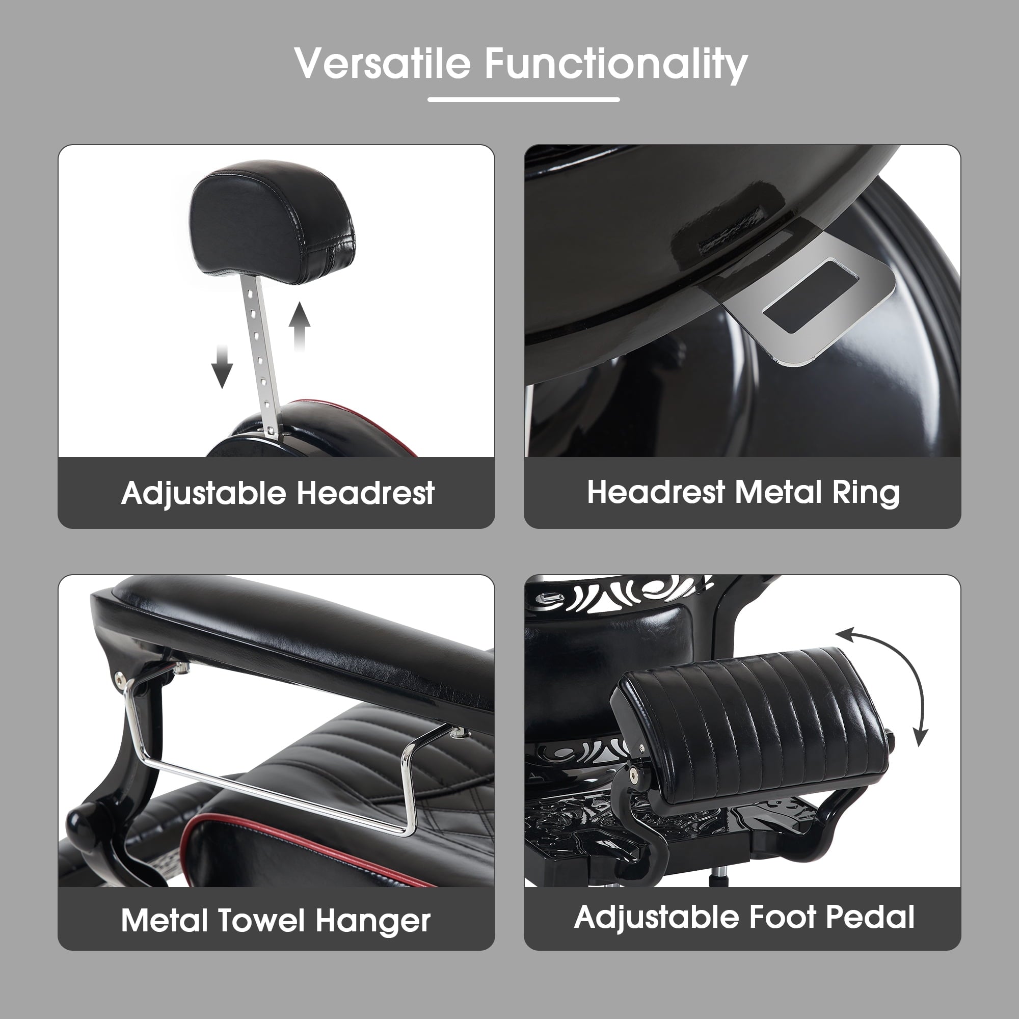 Product Description: This retro vintage professional reclining chair has a modern classic black&white “Panda” colorway. Diversified functions and adjust ability reclining lever can help you realize your haircut and beauty dreams in professional barbershops, home barbershops, beauty salon and more!