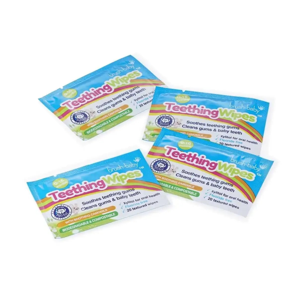 Brush Baby's Biodegradable Teething Wipes provide gentle, soothing relief for your baby's tender gums during the teething process. Formulated with natural camomile and Xylitol, these soft, disposable wipes help cleanse and protect delicate gums and first teeth. Individually wrapped for hygiene, the travel-friendly wipes are free from fluoride and parabens, making them a safe and environmentally-friendly choice for your little one's oral care needs from birth to 16 months.