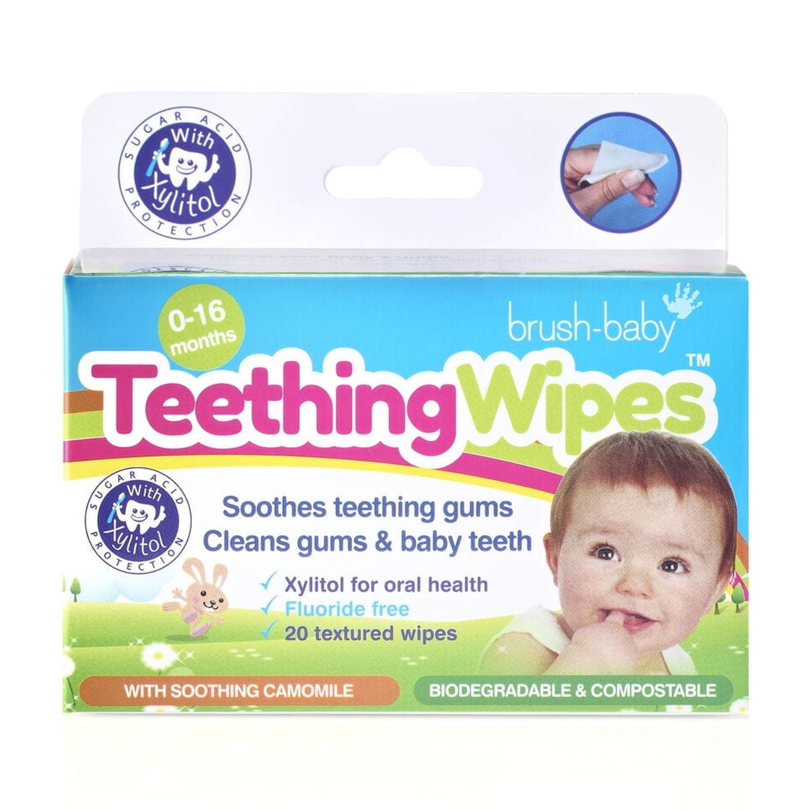 Brush Baby Biodegradable Teething Wipes with Camomile, 20 Wipes