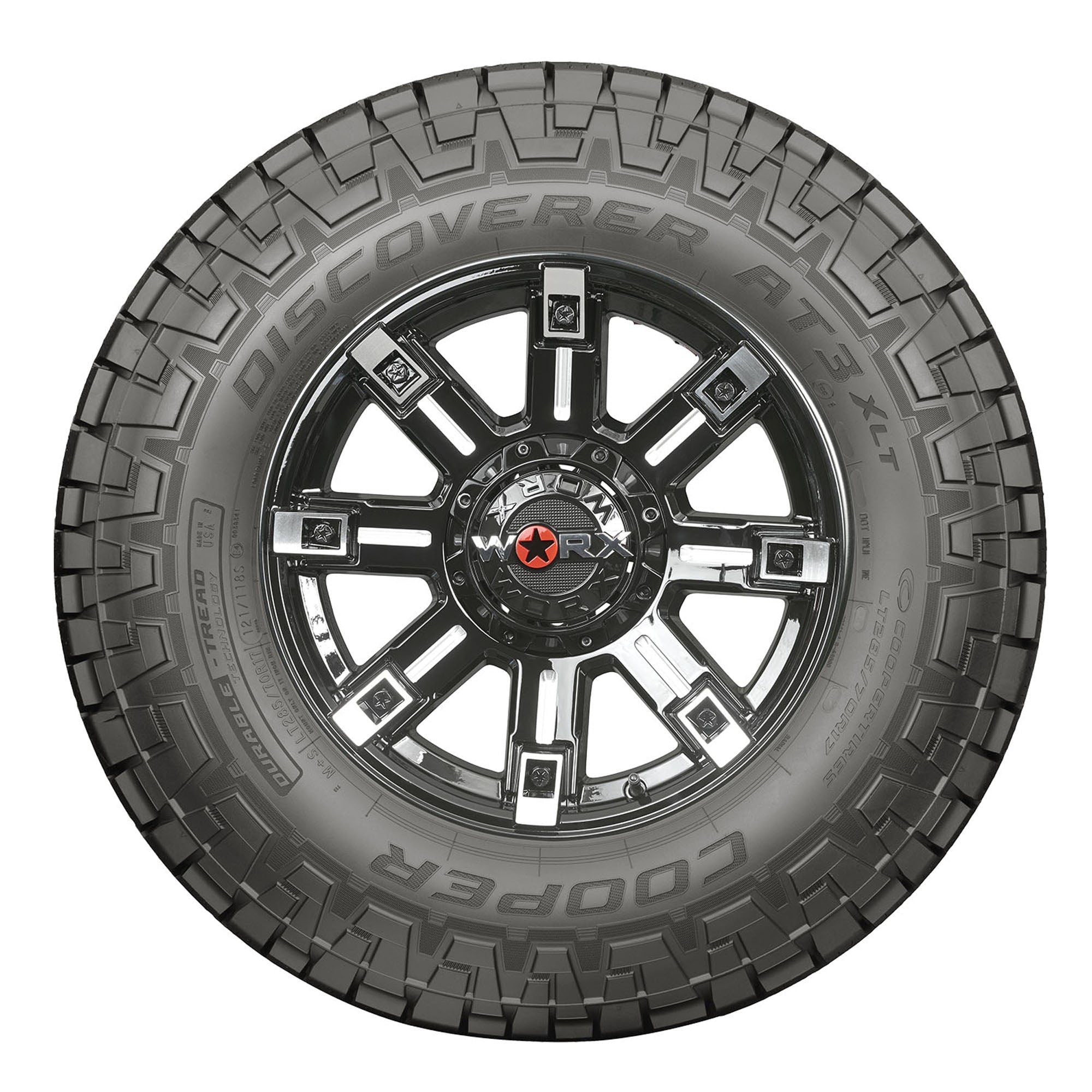Cooper Discoverer AT3 XLT LT275/70R18 125/122S E OVERVIEW Whether your destination is the jobsite, a fishing spot off the beaten track or the grocery store, the Cooper Discoverer AT3 XLT tire is ready with a durable design, dependable off-road traction, and good road manners and ride on the pavement for your light truck or SUV. The Discoverer AT3 XLT features Cooper's Durable Tread Technology for enhanced load rating and long wear, while the Secure-Grip all-terrain tread pattern features deep grooves, stone ejectors, and rugged shoulders for great traction in mud, snow, sand, and gravel. The Discoverer AT3 XLT's Whisper Grooves are a system of sound buffers to reduce road noise and improve ride comfort, and the tire is also backed by a 60,000 mile limited manufacturer tread life for more miles and fun.